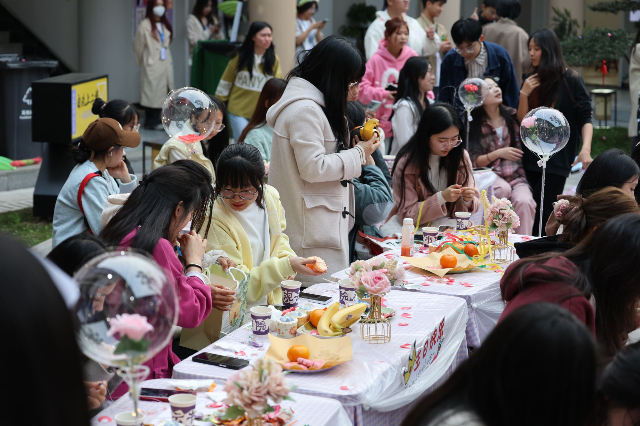 为了增强师生们对生活的热爱度和幸福感,观云书院还为寿星们准备了100份桃花酥、100份春日小蛋糕以及100个放置有玫瑰花的春日发光波波球。满满的仪式集齐了400朵“春花”,也集齐了对寿星最真切的祝福。