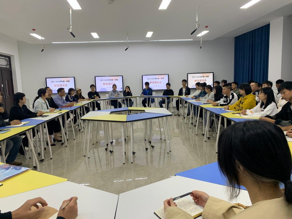 10月13日晚19时,在大数据与信息安全实训中心S1105智慧教室,召开新生座谈会。会议由副校长孙玺教授主持,集团教学顾问李长萍教授、教学督导与质量评价中心主任祁立雷、专职督导韩国柱教授,各教学部门负责人及教学组组长,以及来自各学院的新生代表共计50余人参加了此次座谈会。