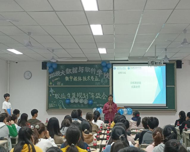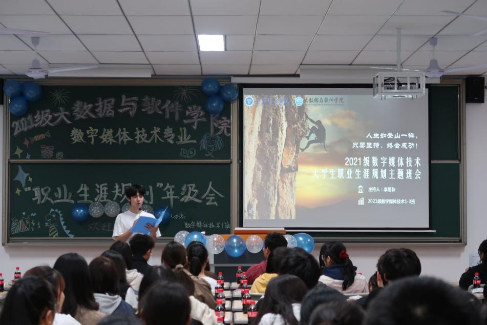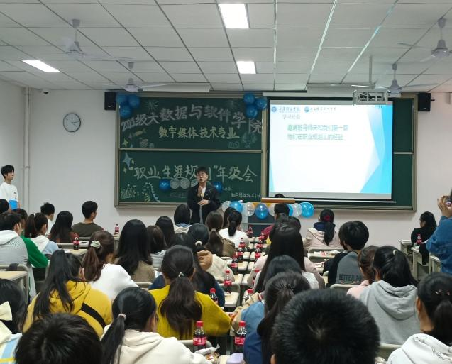 只争朝夕,不负韶华。10月22日下午4时,为了帮助同学们培养职业规划意识,大数据与软件学院数字媒体技术1-3班同学在勇者楼303举办了一场职业生涯规划主题年级会。年级会由辅导员蔡娜老师主持,淬炼商学院成真老师,班导师袁云龙、覃明月以及数字媒体技术1-3班全体同学参加了此次年级会。