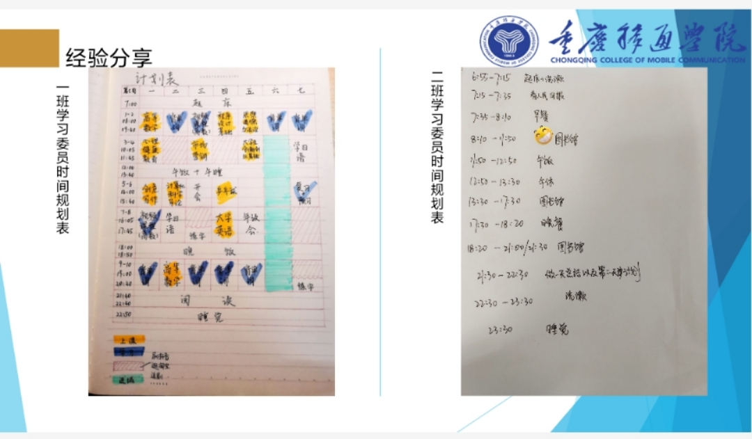 时间最不偏私,给任何人都是二十四小时;时间也最偏私,给任何人都不是二十四小时。当许多人在一条路上徘徊不前时,他们不得不让开一条大路,让那珍惜时间的人赶到他们的前面去。可以看出,时间的重要性,因此,在第三个环节,数字媒体技术各班的学习委员向大家展示了自己的时间规划表。学习委员们希望同学们能够合理规划时间,在提升自己各项能力的同时,不忘学业。