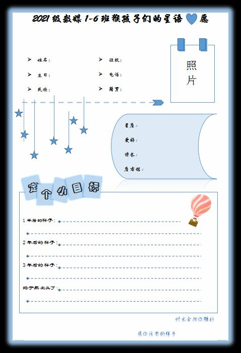 星星之火,可以燎原。在年级会的最后一个环节,辅导员蔡娜对会议做总结并对学生们做出殷切希望——成为一个自己想成为的人。入场时,每人都领取了一张由辅导员亲自设计的星语星愿表,在星愿表上,罗列着大家对未来每一年的目标,理想。