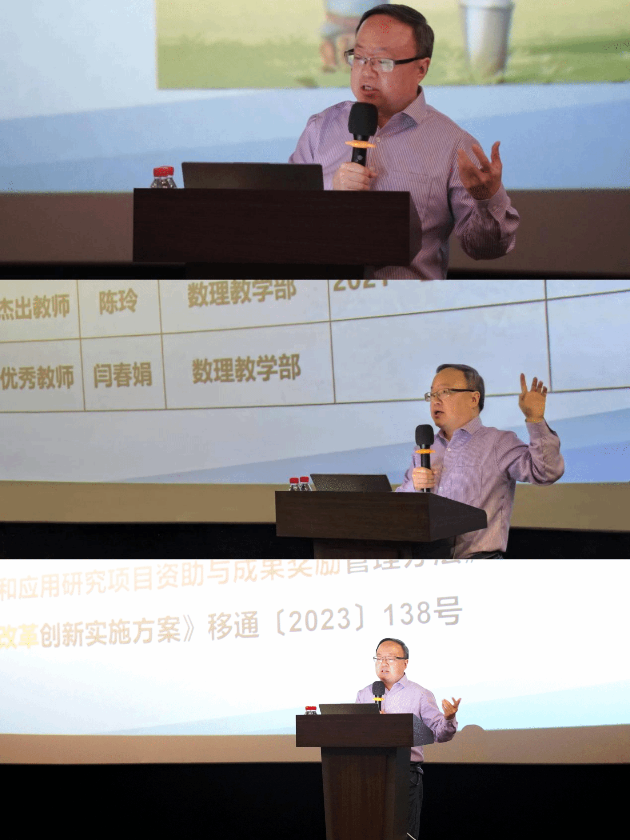 随后,高飞处长详细介绍了学校相关教师制度,强调 “制度为本,遵规范”,要求教师掌握工作规范要点,将其作为在移通学院安身立命的根本。同时提及“竞赛为用”,阐述教学竞赛与学科竞赛的重要性,以及“职业路径”,鼓励教师重视职称晋升、岗位竞聘、远景百万、项目申报、职务晋升等多方面职业发展路径,并希望教师摆脱惯性躺平思维,跳出舒适区,以更广阔的视野面向未来。