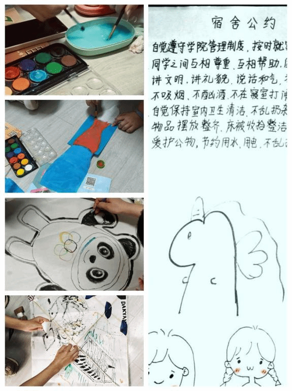 须知事事需躬行,我们学风建设板块之所以能够小有成就,是因为我们拥有一个个和睦而又美好的小小家庭,我们时常动起双手,为我们感兴趣的手工材料来一次大变身,颜料“醒”过来了,舒展它们五彩的身姿,一起为我们的小屋装点粉饰。在这么团结和美的背后,寝室文明公约占据头功,每一名舍友虽源至五湖四海,但每一颗心灵都紧紧相依,我们有自己的小小约定,逐渐从不熟悉到熟悉,从朋友蜕变为家人,良好的宿舍环境和氛围为学习打牢基础,让我们能够将精力集中在学业上,保障学习效果,提高学习成绩。