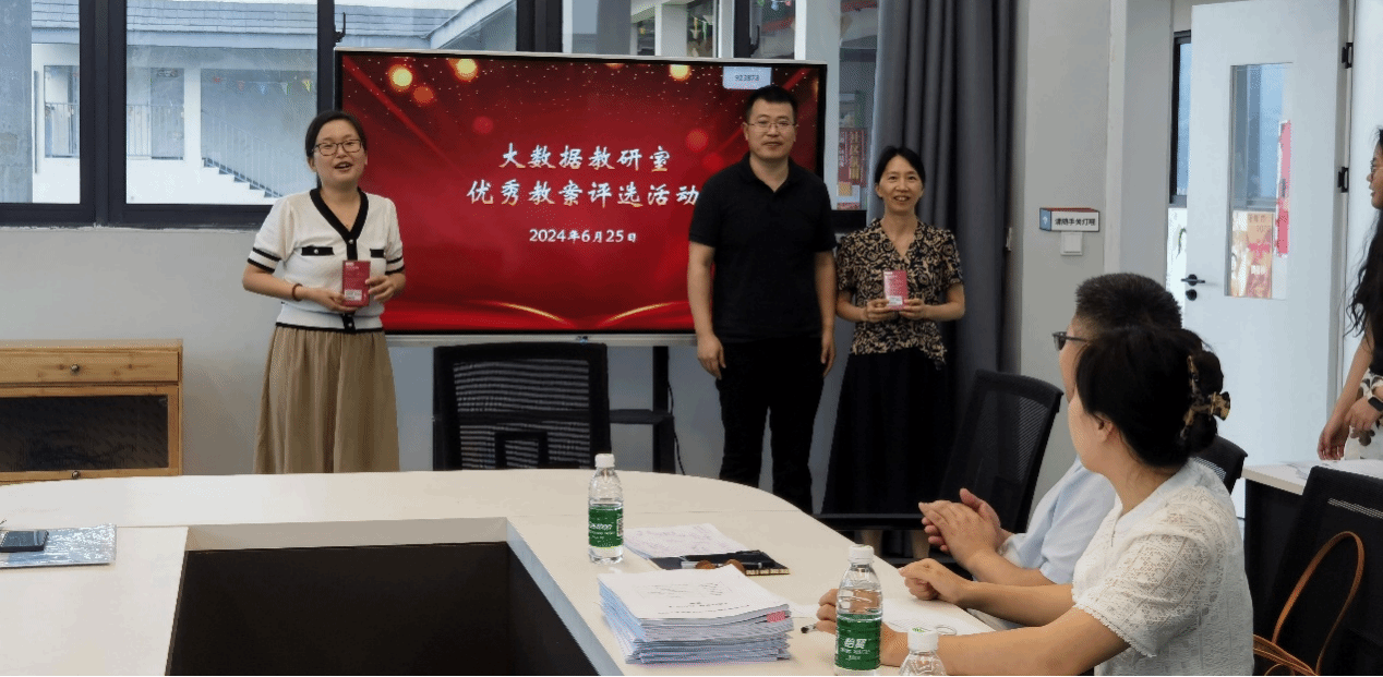 最后,根据评委的集体打分,举行了大数据教研室优秀教案活动的颁奖仪式,各位领导依次给获奖教师颁发了荣誉证书和奖品。