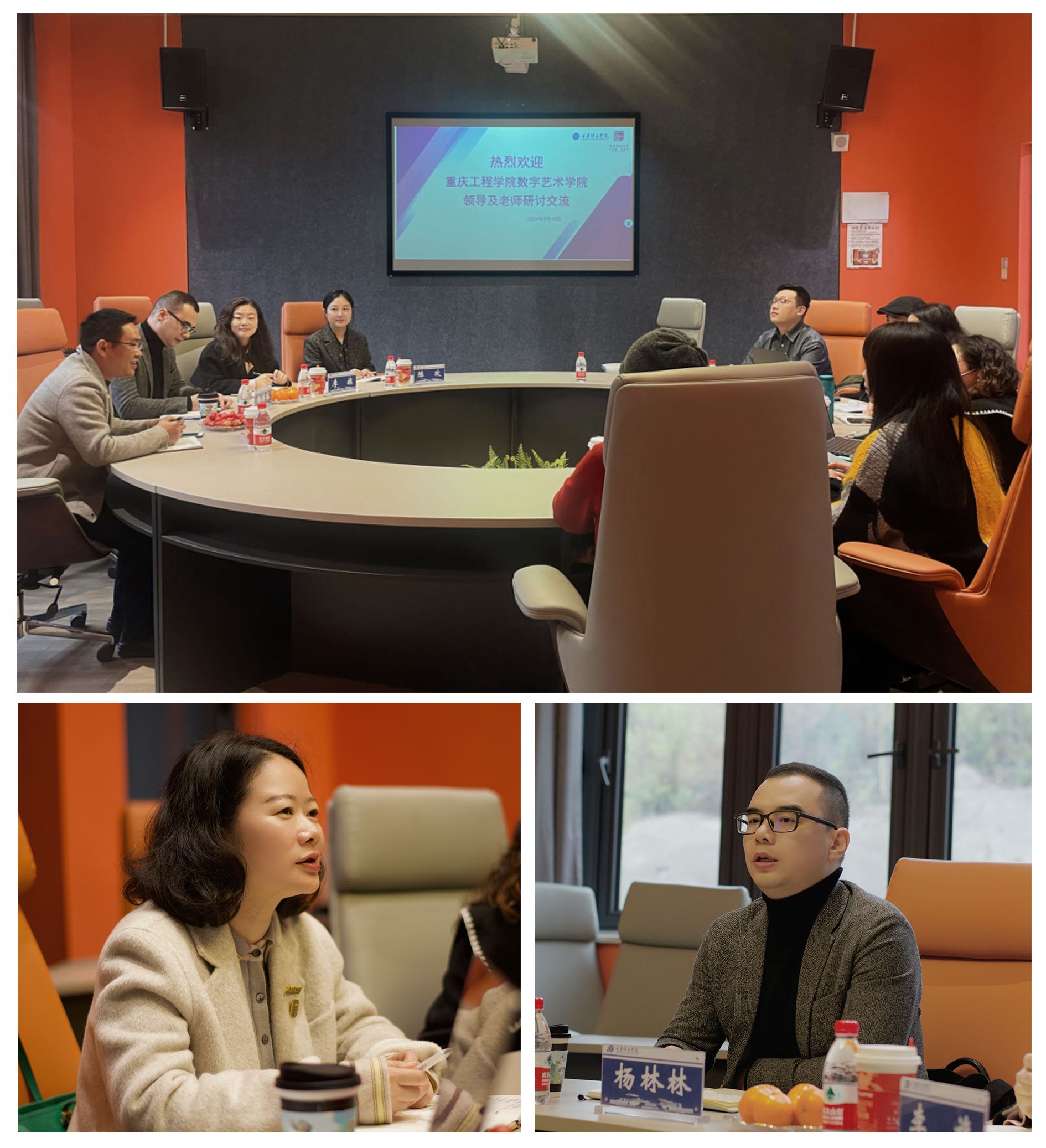 为合格评估工作顺利进行,以切实行动回应“内涵建设与质量提升主题年”,响应学校“双一流之外的首选大学”的品牌价值主张。2024年3月18日下午,戏剧影视学院在古剑书院龙泉会议室接待了前来交流的重庆工程学院数字艺术学院副院长杨林林、影视动画系主任陈银伟、副主任李旗、教师代表陈欢。双方围绕合格评估工作事宜进行了深入的交流,也以电影制作、动画两个艺术专业为切入,探讨了学科发展、人才培养、专业建设、实验室建设、队伍建设等主题。戏剧影视学院副院长王芳、综合艺术教研室主任袁梦茹、动画专业负责人李如冰分别就合格评估工作推进、动画专业发展和艺术专业课程群建设发表了看法。骨干教师杨帆、周极、熊琳、秦小花也对戏剧影视文学和电影制作专业的建设工作进行了介绍。