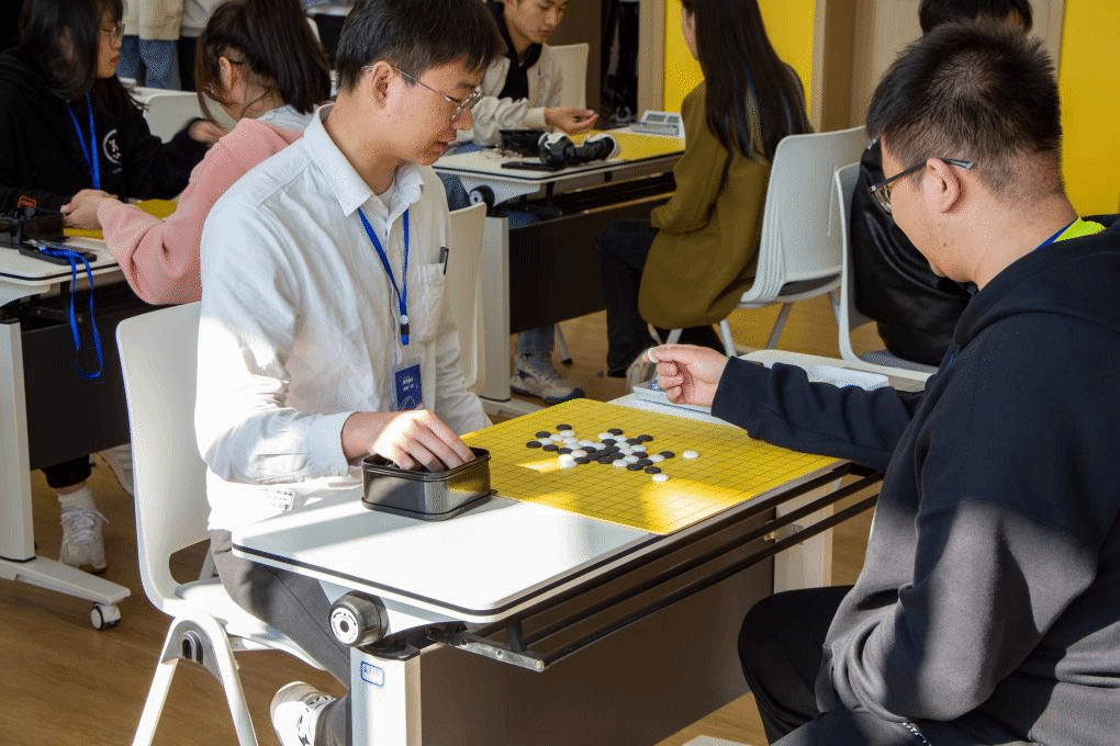 我校作为东道主不仅提供了专业性的赛事平台与场地,更是在特色的书院空间设置自由博弈、交流空间。让每一位热爱兴趣的同学都能得到最大的认可与尊重!各高校代表在比赛之余,以兴趣为轴心相互交流,分享棋路心得,用真诚交流,发展兴趣、合作交融。