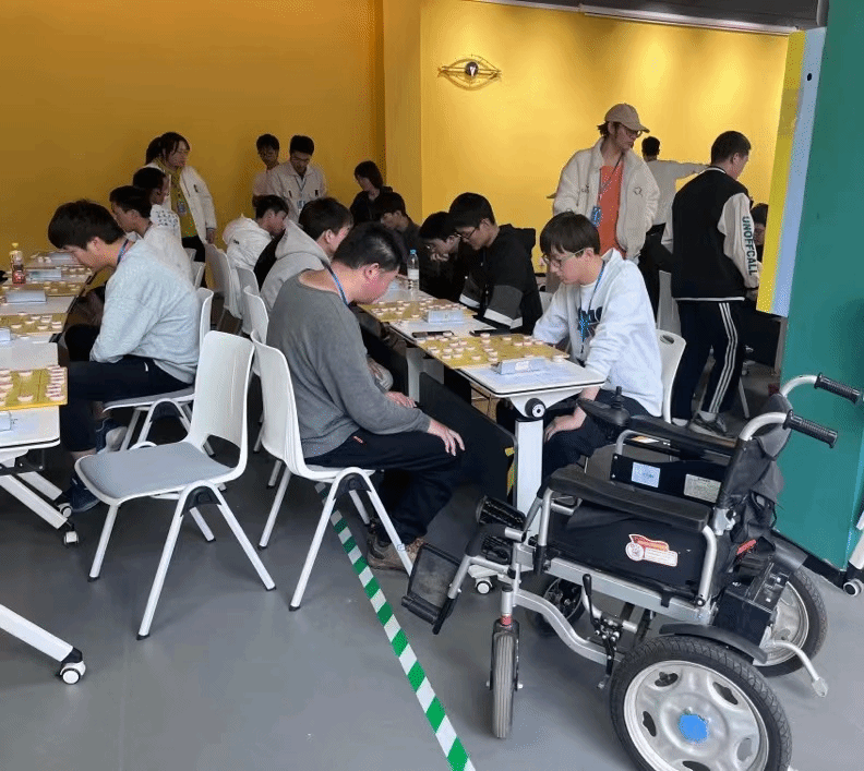 今年的比赛,有一位特殊的参赛者。他是重庆轻工职业学院第一个报名的同学,但校方在考虑到该同学行动不便,路途长远与实际情况下,该校婉拒了这个报名。但他不想错过,一次又一次的争取,学生的诚恳和渴望得到了回应。该校派出老师与他专车来到移通参与比赛。他的棋艺没有特别出众,但是同行的朋友说他的学校生活除了上课就是下棋,在现场,他很激动,也很开心,和来自高校的同学切磋、交流、讨论战术……发自内心的笑容感染着身边的每一位参赛者。