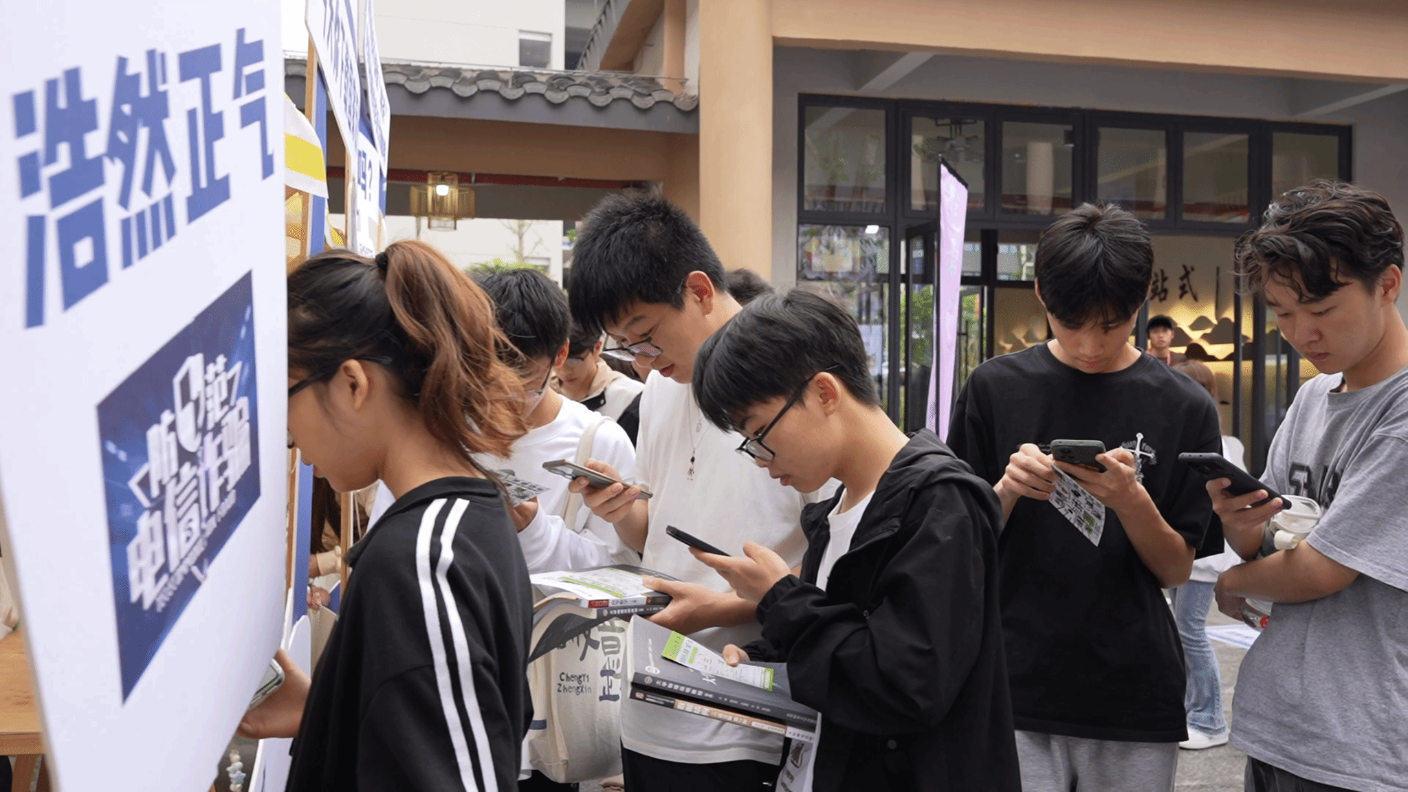 在“反诈平安亭”周边,戏剧影视学院学生会的同学们化身“反诈宣传员”正耐心指导着前来打卡的同学们如何下载安装并实名认证“国家反诈APP”,通过“反诈问卷”现场普及当下常见的诈骗类型和手段,并了解大学生群体对于反诈基础常识的了解程度,对此进行答疑解惑。
