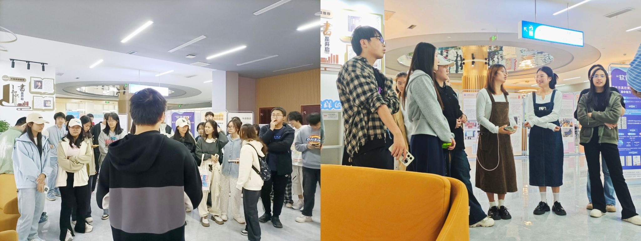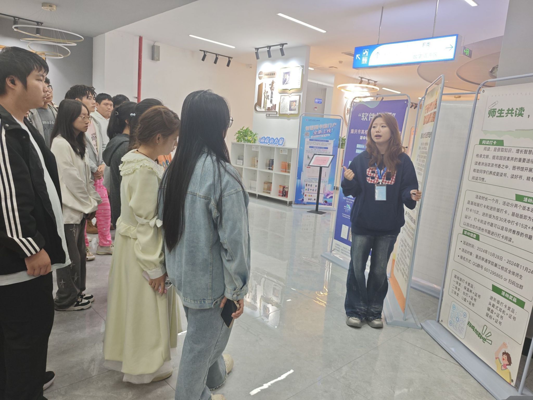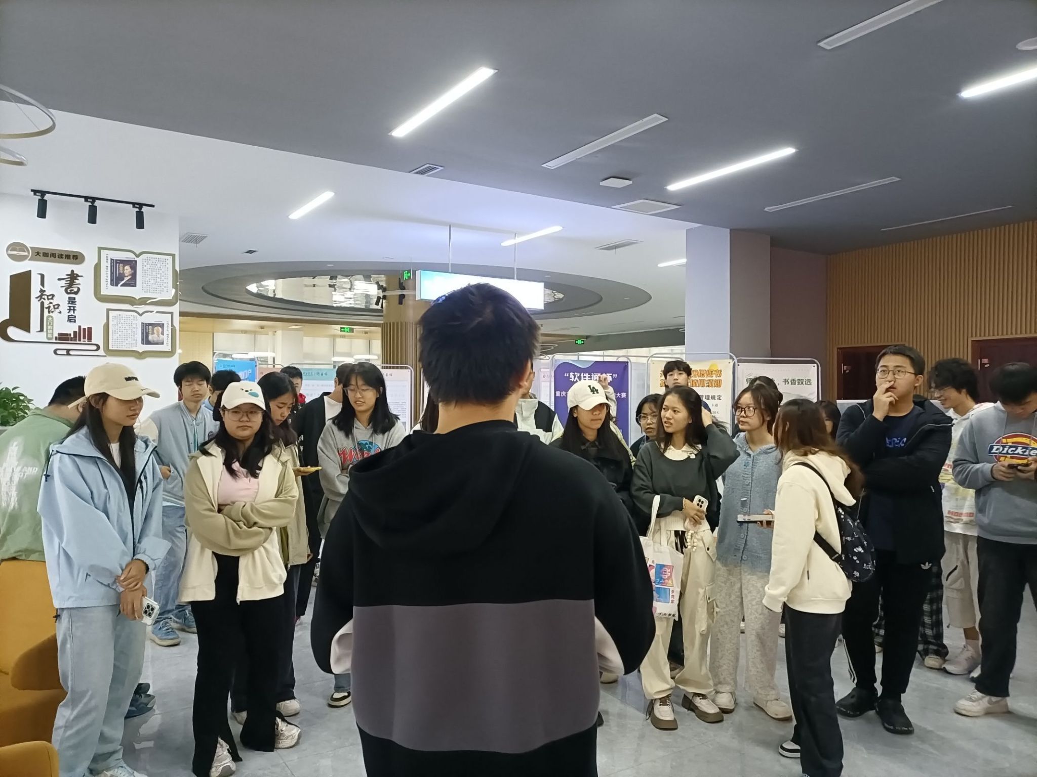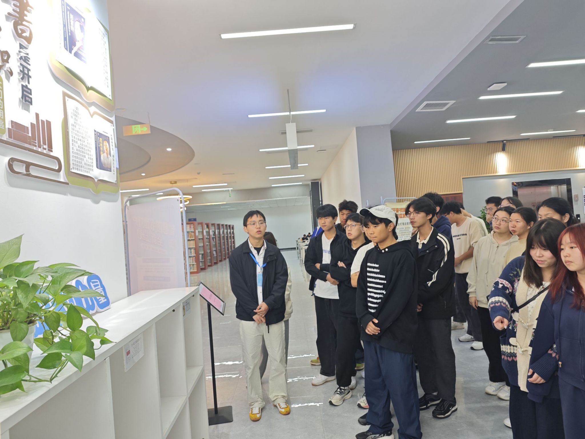 接着,图书馆工作人员带着大家参观了馆内特色“大咖阅读专区”,并引领同学们进入了活动展览区——作家领读区、师生共读区,这里记录着图书馆举办的诸多精彩纷呈的活动——“软件通杯”的智慧火花,“师生共读,书香致远”的温馨瞬间,每一幕都深深触动了同学们的心弦,激发了他们浓厚的兴趣与热情。相信同学们可以通过参与这些活动使自己更上一层楼。