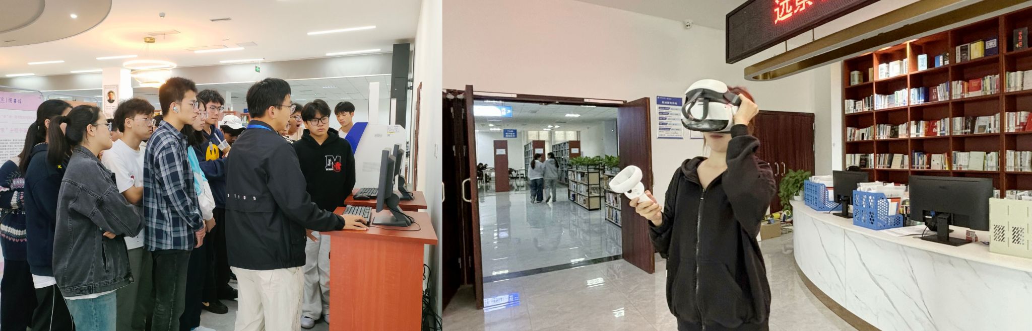 为了让新生们更深入地体验图书馆的服务,活动现场还进行了互动环节,工作人员现场演示了如何使用图书馆的自助借还机、如何检索电子资源等操作,鼓励新生们亲自尝试,去感受数字化阅读的无限可能。此外,还带新生们亲身体验了VR阅读机,感受了科技带来的便捷与乐趣。许多新生表示,通过这次实践操作,他们对图书馆的使用更加得心应手了。