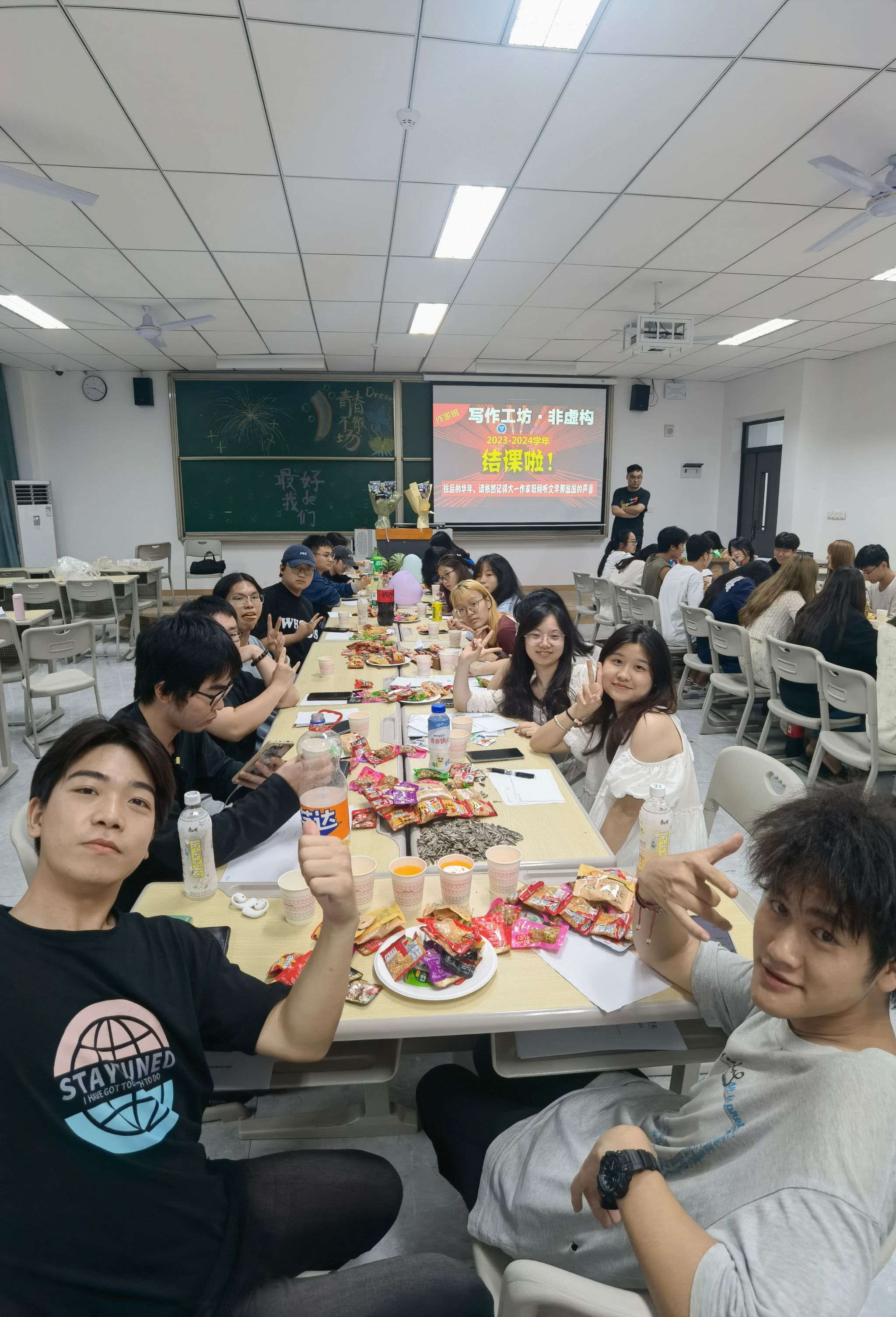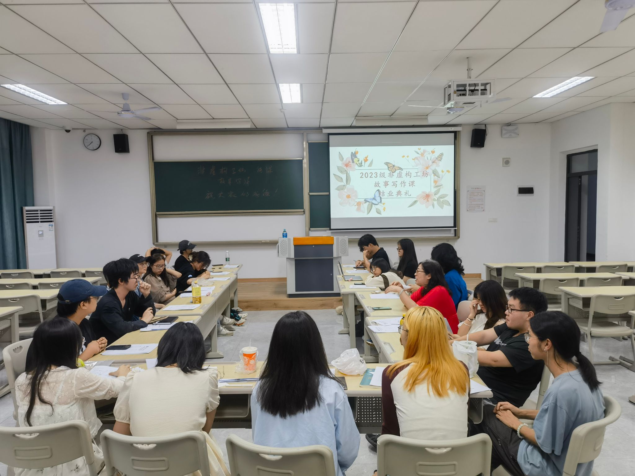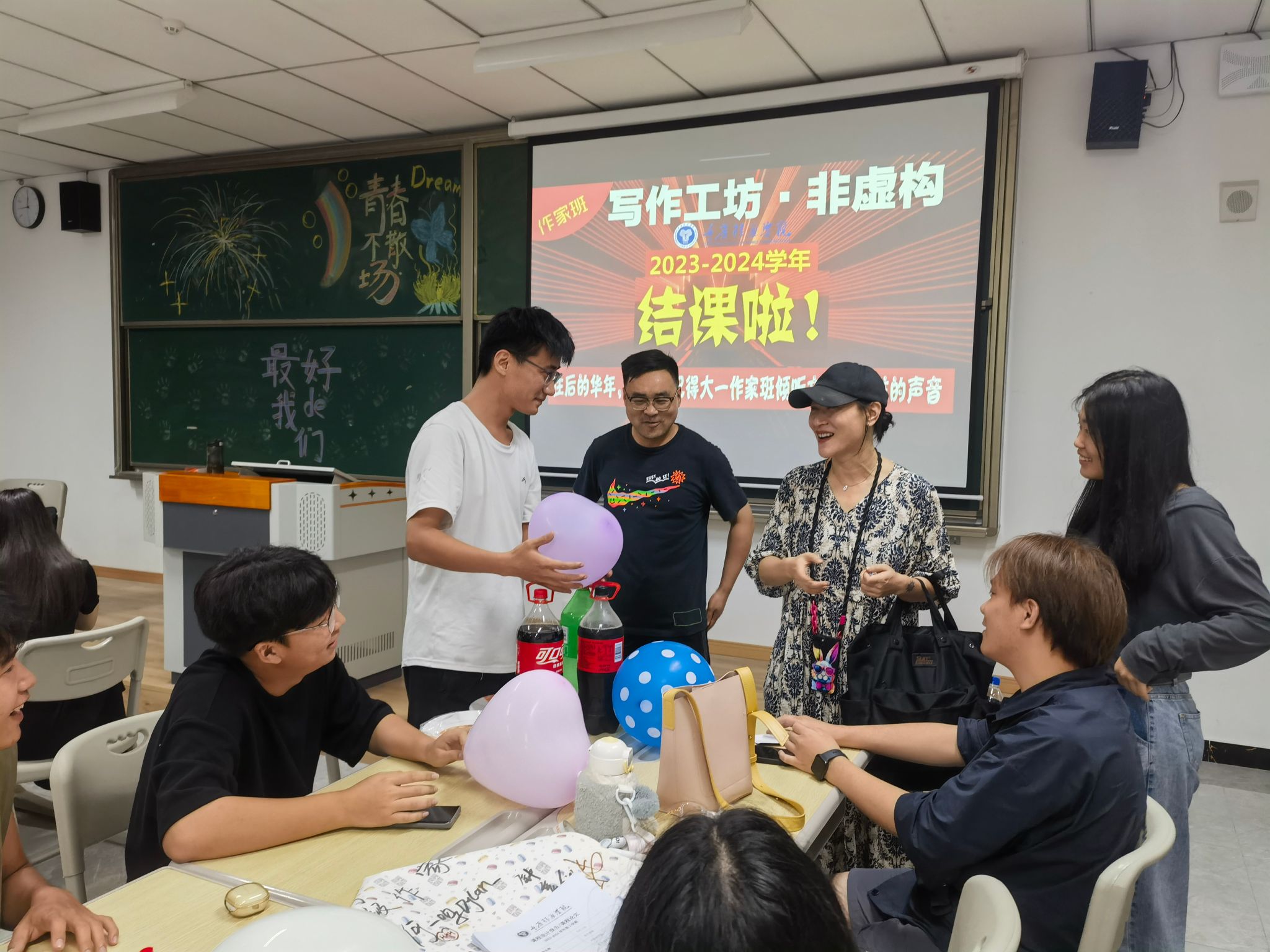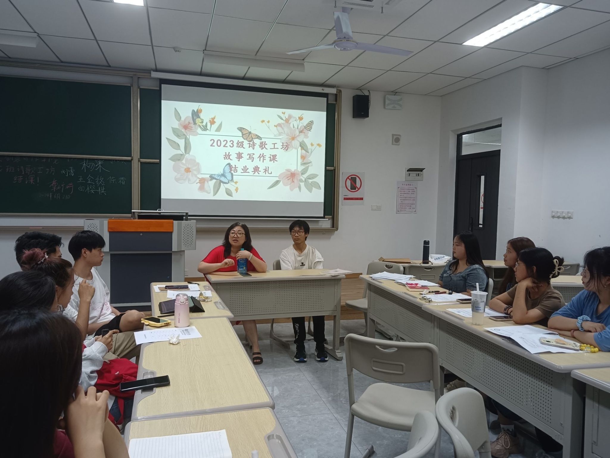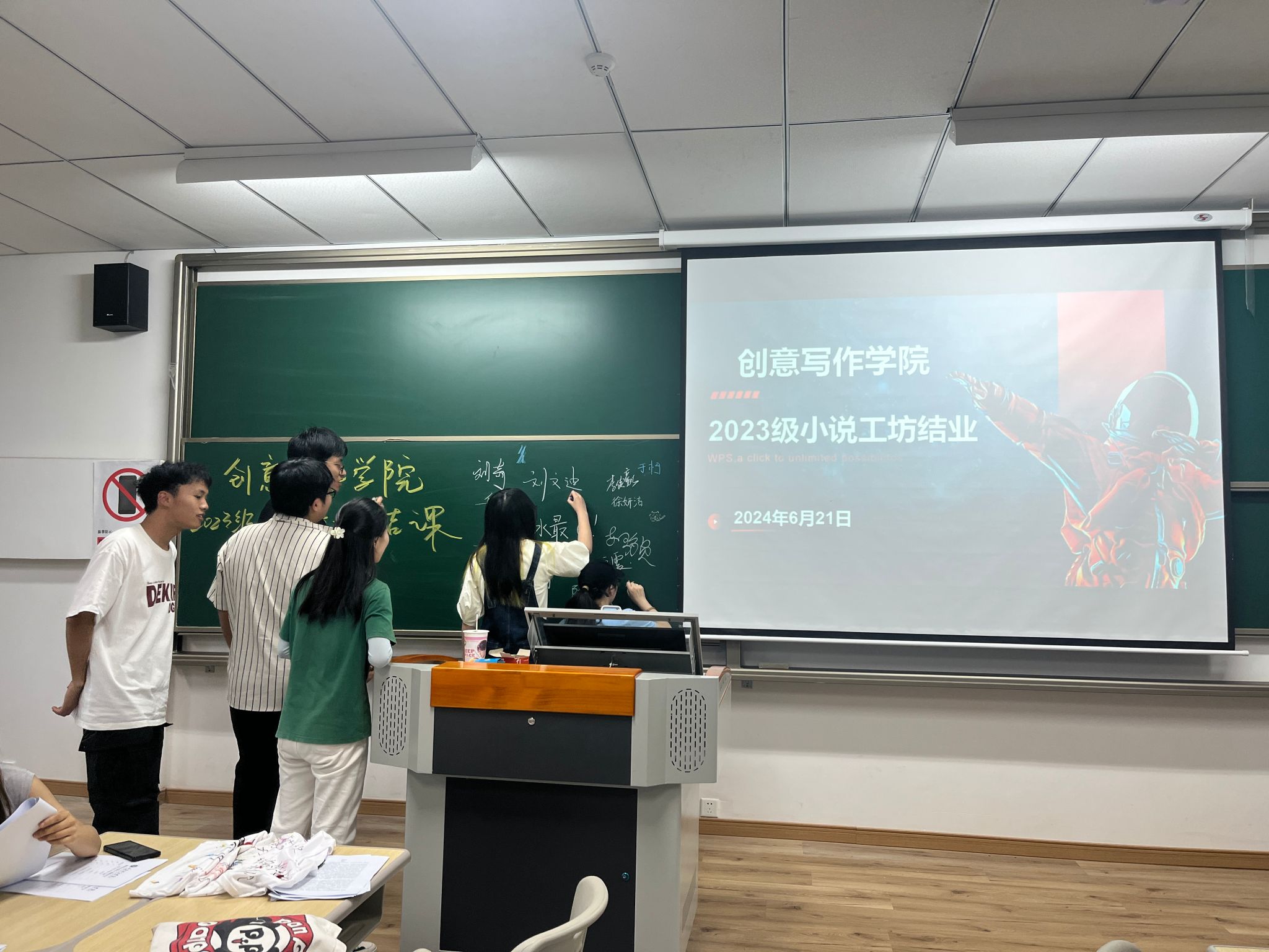 2023年6月21日晚,随着最后一堂课的铃声响起,创意写作学院作家班的大结课如期而至。同学们怀揣着对作家班的热爱,走过了这段充满挑战与收获的旅程。五个工坊班,都弥漫着浓浓的离愁别绪和依依不舍之情。这一年里,作家班同学像一群勇敢的探险家,探索着未知的文学领域,大家学会了如何捕捉灵感的火花,如何将内心的情感转化为笔下滚烫的文字。他们感恩遇到的每一位老师,是他们用智慧的光芒照亮了同学们前行的道路。