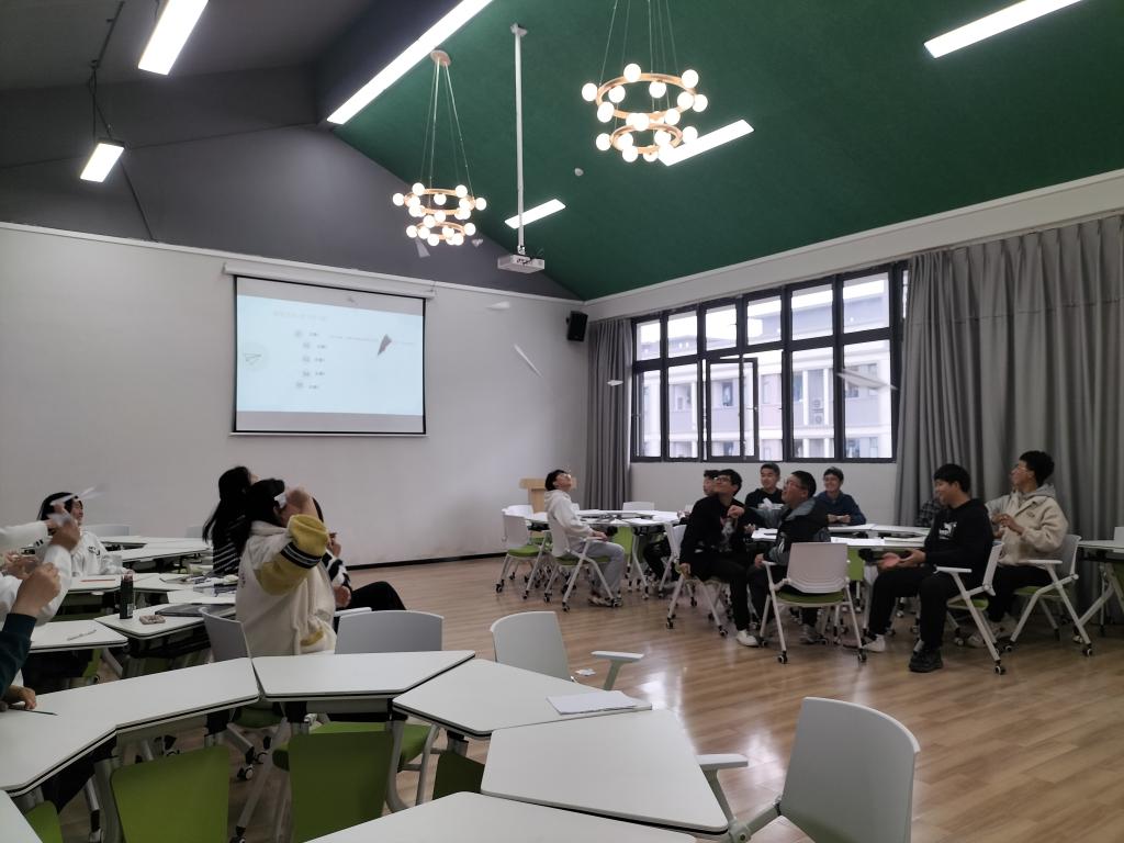 紧接着,张老师就带领大家一起通过互动小游戏来探索自己的职业兴趣和能力。在“放飞纸飞机”这个游戏开始之前,张老师让大家在纸飞机上写下自己理想的未来的工作,并思考自己认为是“择己所长”更重要还是“择世所需”更重要,同学们在游戏后进行了激烈地讨论。