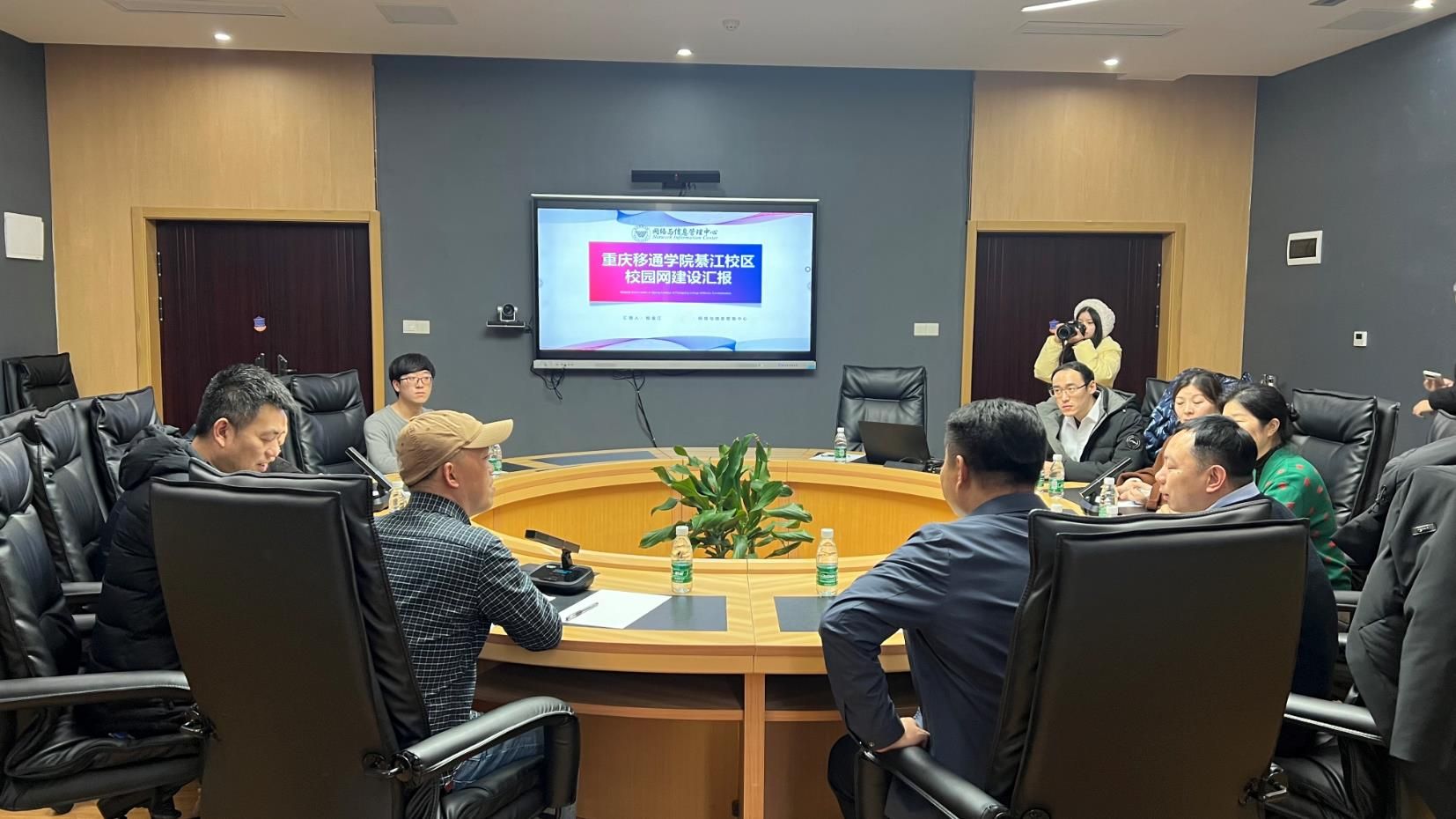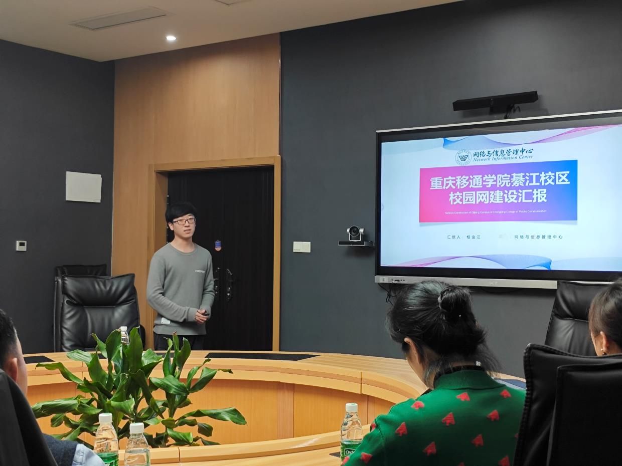 会议由重庆移通学院綦江校区网信中心主任吉腾渝主持。会上,柏金江老师从校园网一期及二期全光SDN以太网项目建设、光纤入户、态势感知平台等方面向与会人员详细介绍了我校校园网建设的现状和成效。