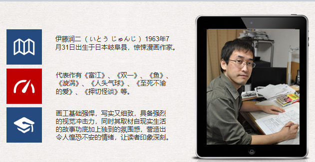 夏曦老师作为恐漫爱好者,在北京工作期间,也曾采访过日本漫画家,对恐漫比较有发言权。她自称,关注恐怖漫画,首先是关注到伊藤润二这个人,才去关注他的作品。恐怖漫画是新漫画的一个分支,如今,恐漫不再是怪诞猎奇的专属,更是一种对未知与玄幻的探索。而看了伊藤润二的照片,你会很惊讶,这样一个美男是世界著名恐怖漫画家?日本东京奥运会上,有一个著名的行为艺术“人头气球”,阴气十足,显然受到他的作品启发。伊藤润仁的粉丝说,不接受反驳。