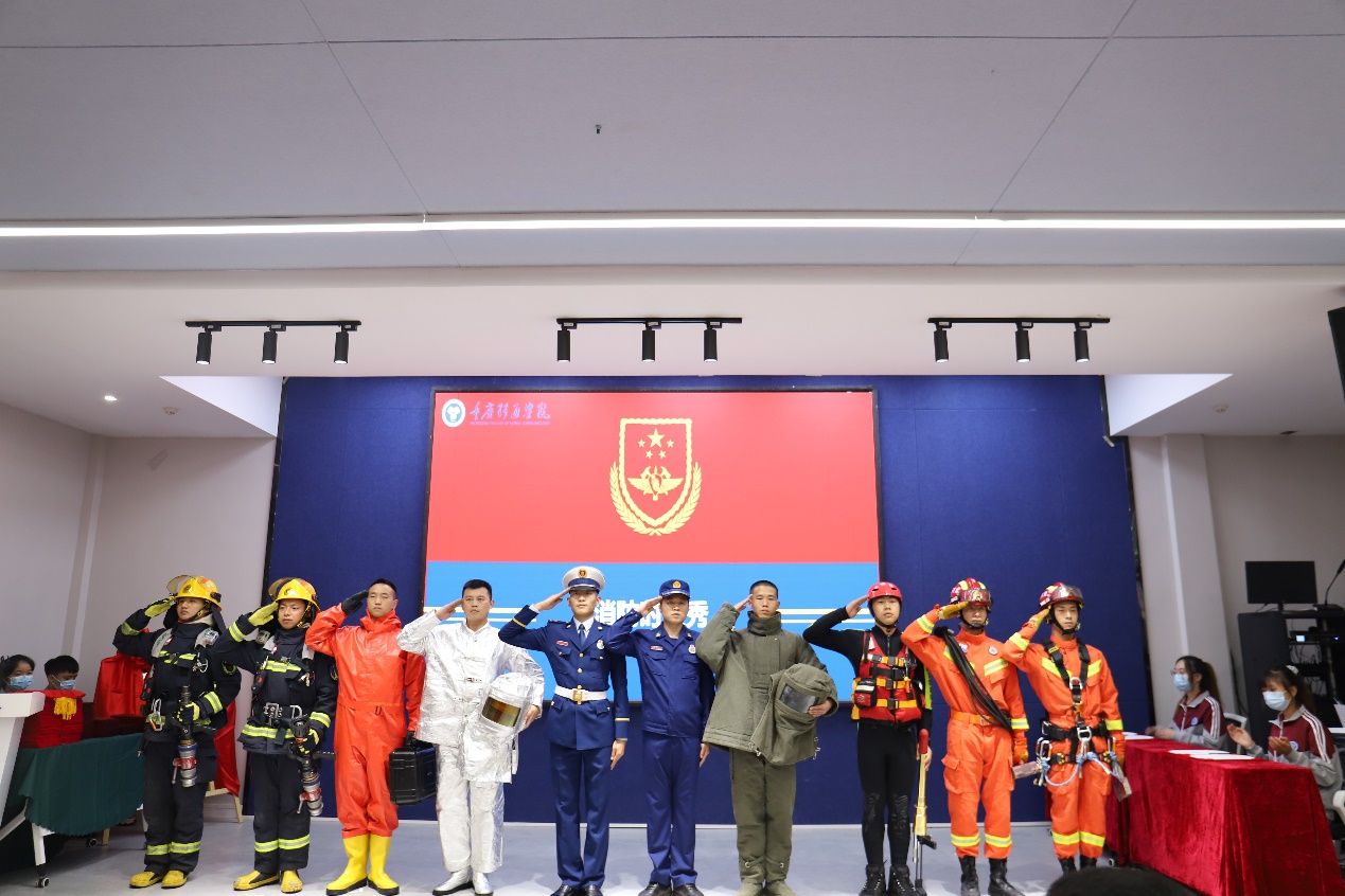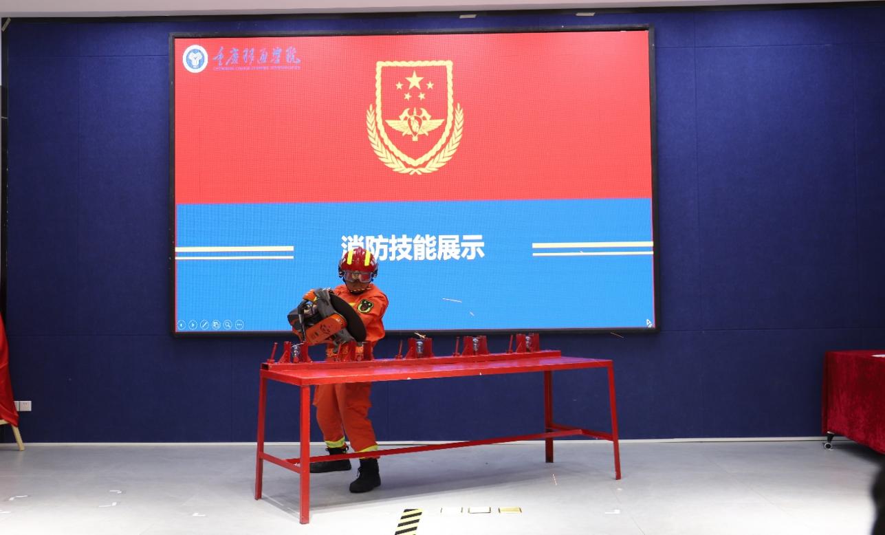 仪式上,播放了区消防救援支队宣传片和我校綦江校区“2030规划”宣传片。通过应急救援纪实影片、灯泡上切割钢丝、多种类消防服装展示,刷新了现场观众对消防救援的认识。通过校区远景规划宣传片,讲述“移通故事”,学院和书院的故事、校区规划发展的故事、学子们在移通的故事……加强了大家对移通学院这所与众不同的大学的认识。