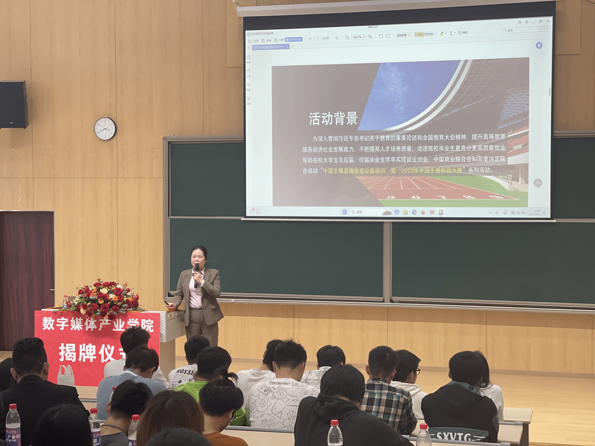 为贯彻落实教育部关于做好全国普通高校毕业生就业创业工作的指示要求,2023年4月12日下午3点30分,“中国直播发展现状与未来讲座暨中国主播校园大赛启动会”在重庆移通学院綦江校区玉棠书院阶梯教室举行。
