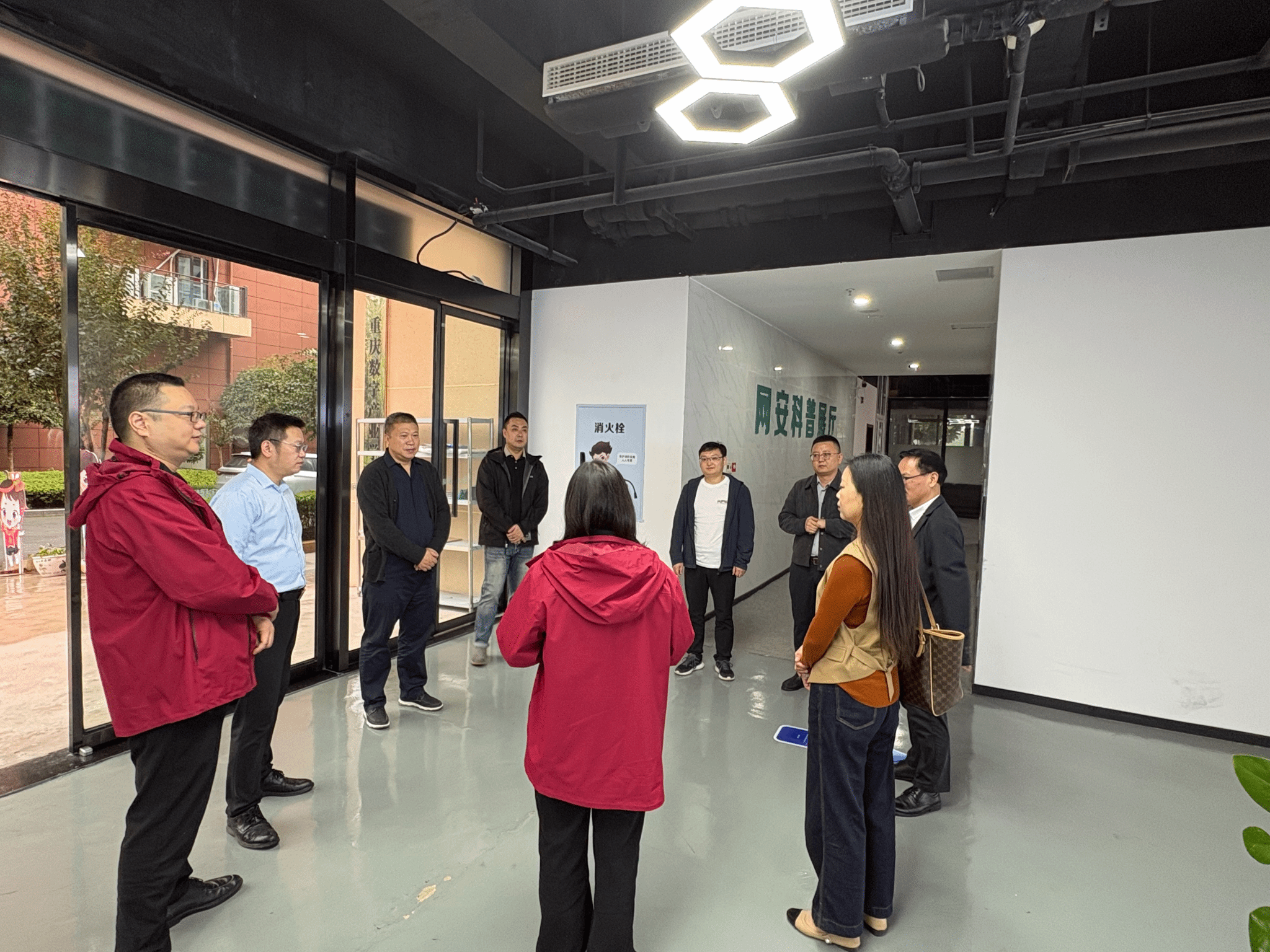 在重庆易阅科技有限公司总经理李乐康和集团南区营销部负责人王斌的陪同下,我校参访教师先后参观了该公司的网安科普展厅、会议会展中心、创业孵化基地、天火实训基地、网安技术学院,全面了解了公司的运营环境与业务范围。