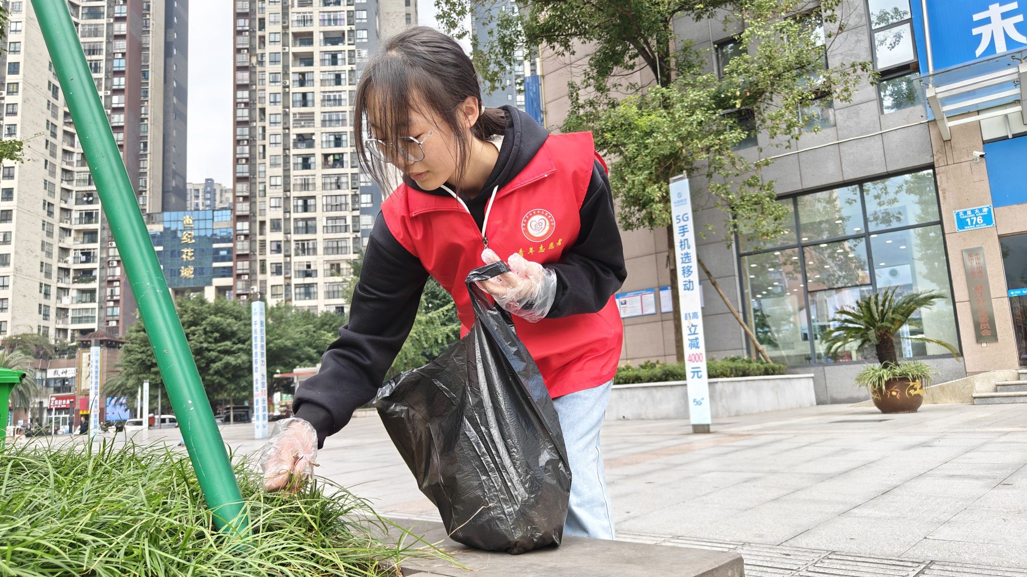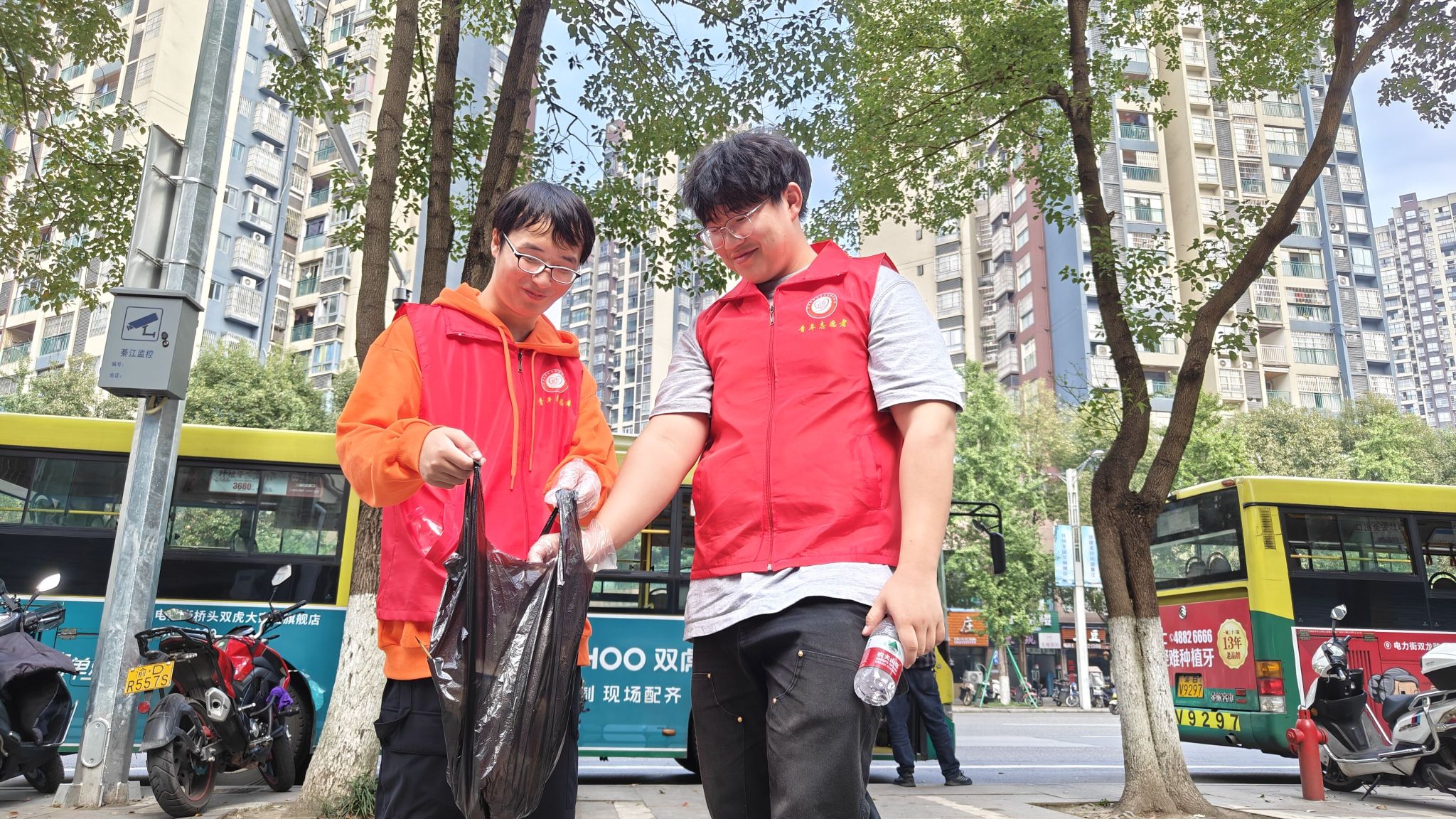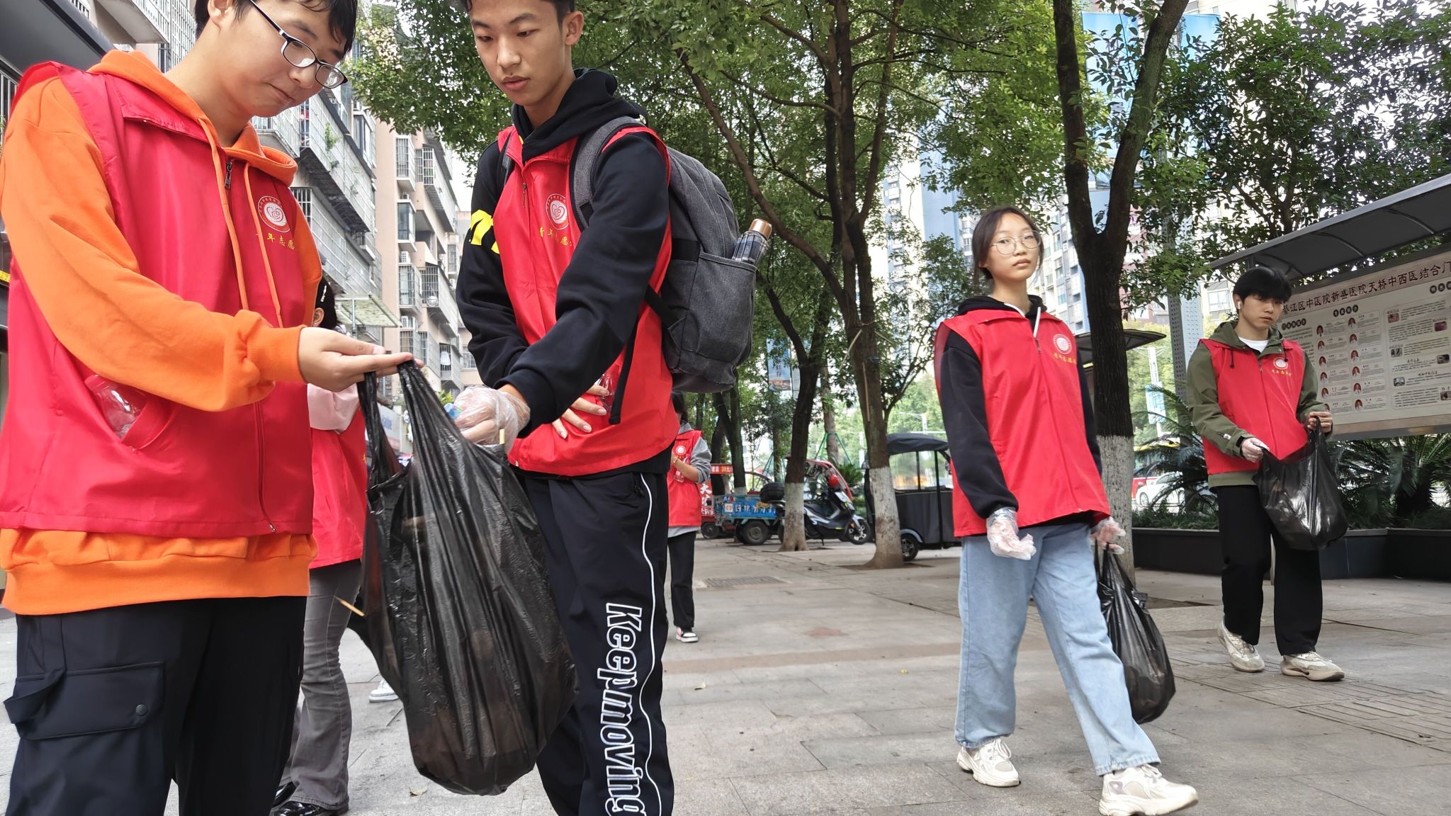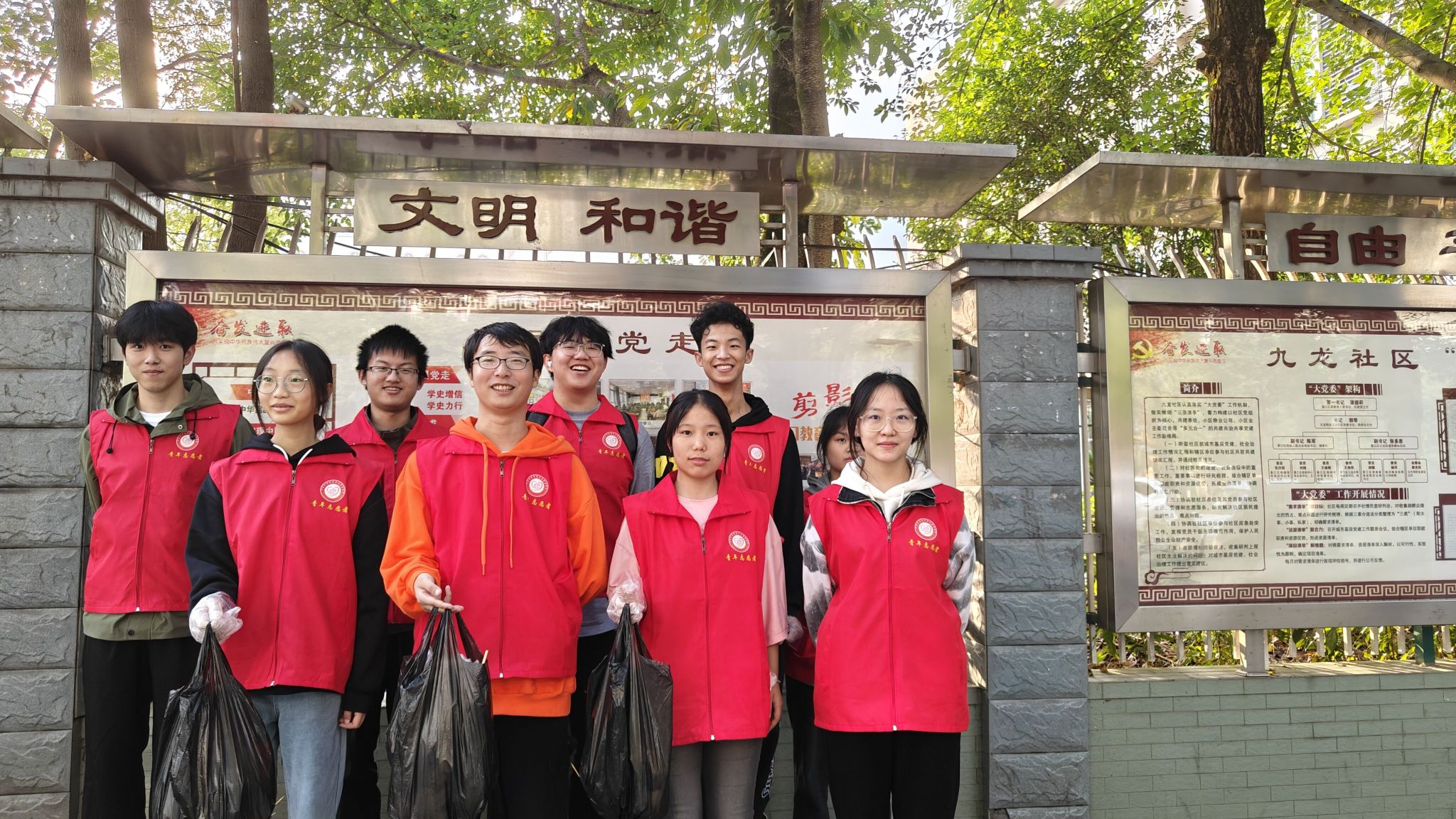 怀揣热忱,整装待发。风和日丽的周五下午,40名志愿者们分为四组来到九龙大道1、九龙大道2、九龙大道3和天星大道四个区域。明确各自任务后,志愿者们戴好手套、提起垃圾袋,随着辖区环卫工人的指引,迈开坚定的步伐,开始了今天的工作。散落的饮料瓶、不知名的烟头以及沾有泥土的烧烤签被小心的捡起,志愿者们一边将它们带回最终的归处,一边对有失文明的行人做出小心劝导。街道两旁,散步的人群微笑着望向志愿者,和三两同行的人讨论着什么。和煦的微风吹拂着脸颊,传达着志愿者们的一腔热血,浸染着清理过街道,焕然一新。