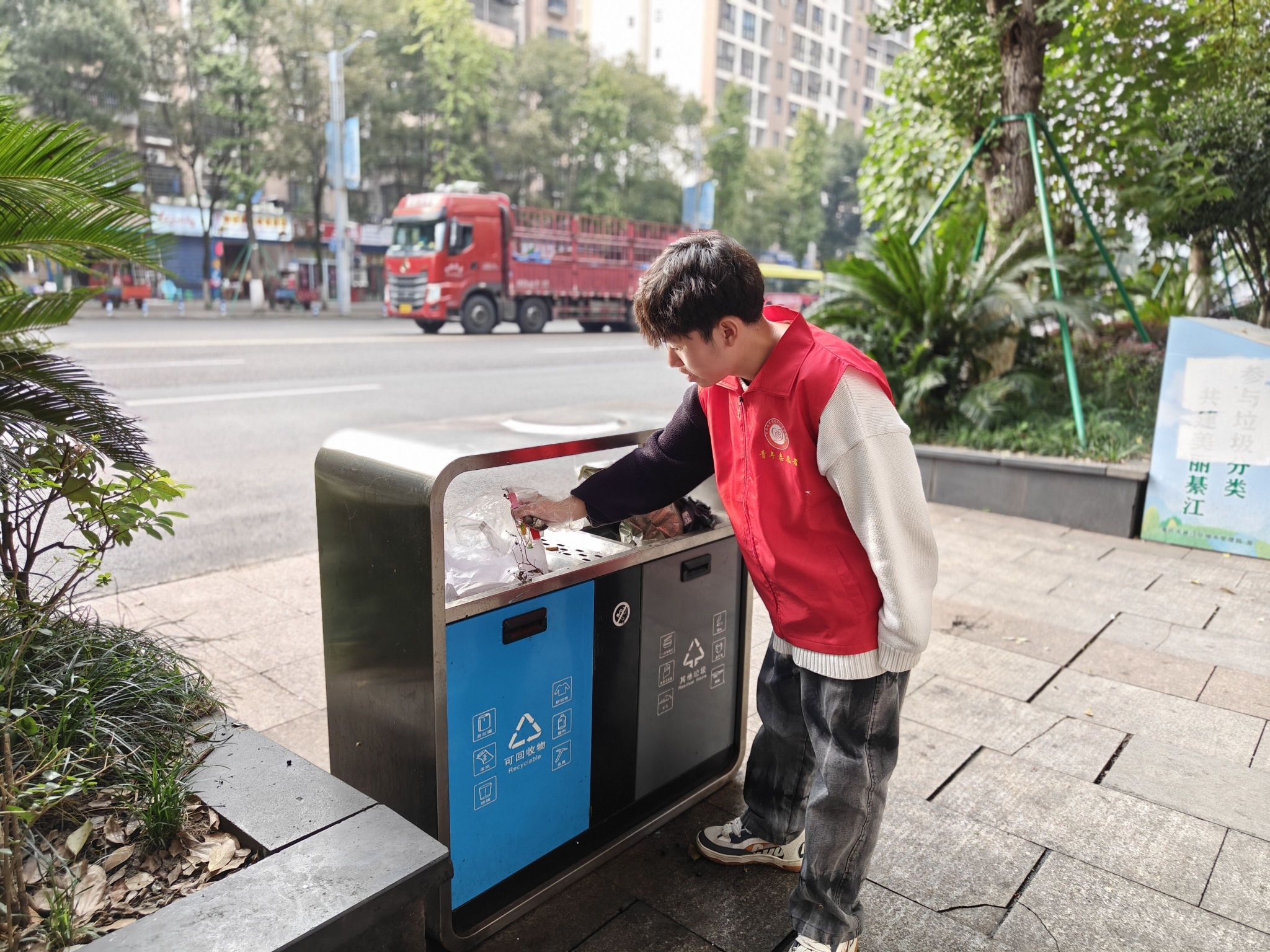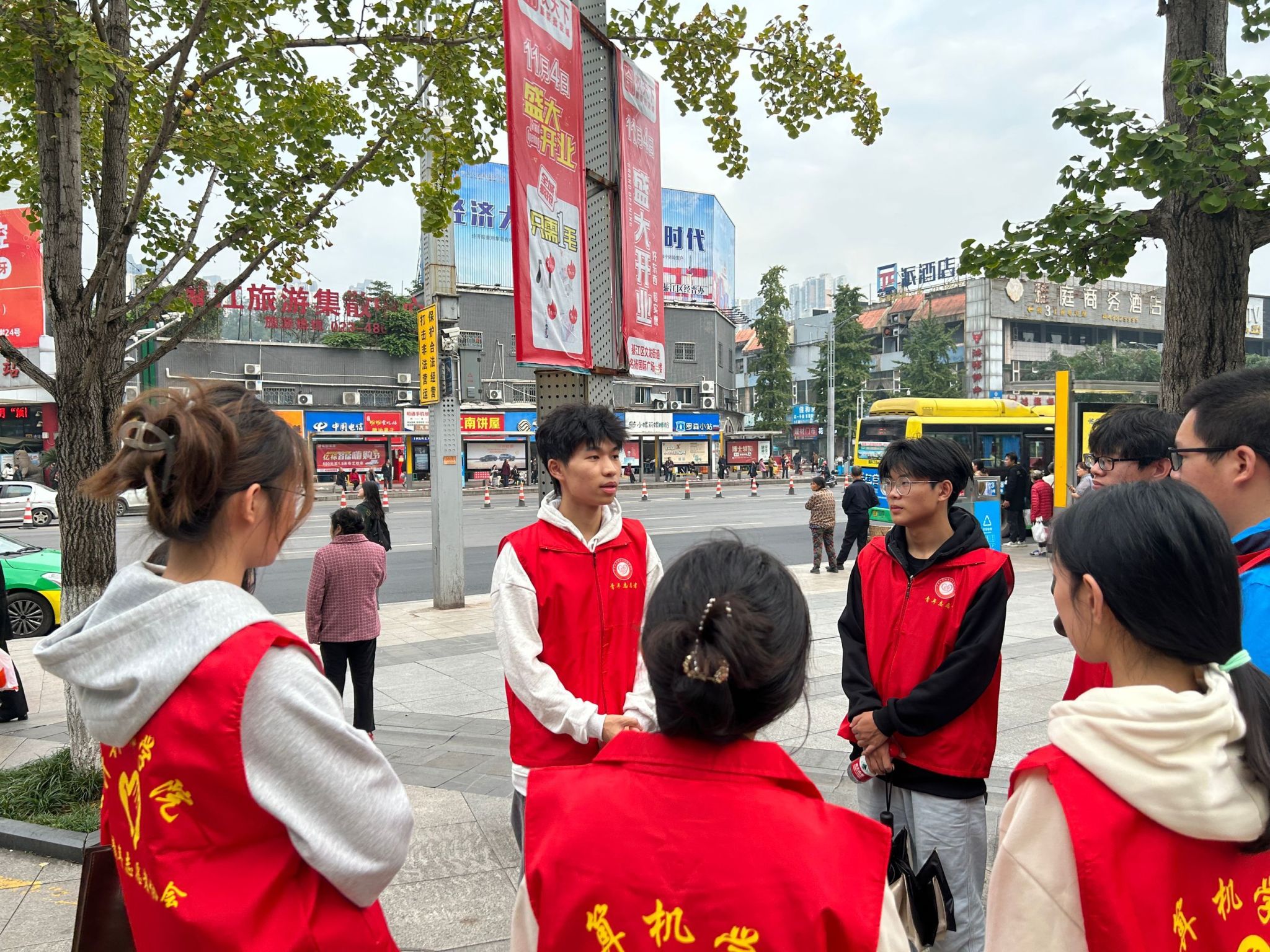为培养大学生的环保意识,倡导文明风尚,在优化社区环境的同时,提升居民的文明素养,重庆移通学院计算机学院的志愿者以及王伟孪、郝月霜两位老师的异科班学生,于11月10日下午14:00到17:00在綦江城区四个街道开展了“文明城区志愿服务活动——洁净家园行动”,在城区主次干道进行市容秩序日常巡查、垃圾清理、不文明行为劝导等志愿服务。