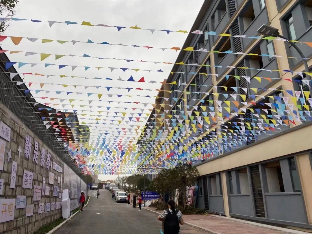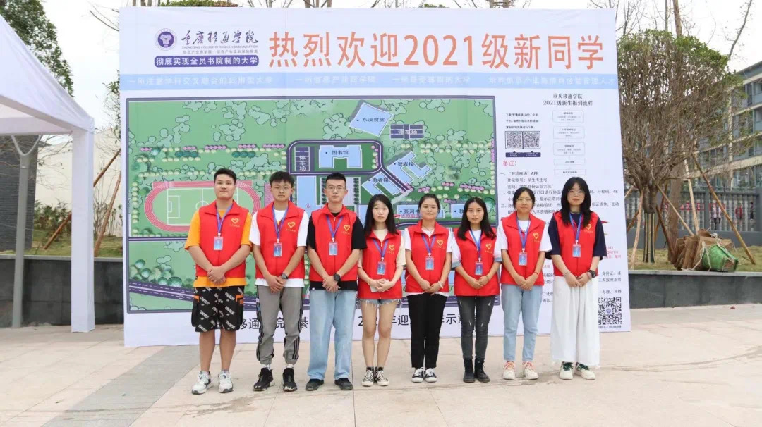 考虑到疫情防控规定,今年家长不能陪同新生入校,门口有许多可供合照留念的道具,一定要记得和父母拍照哦。进校门右转,綦河书院的打卡长街在等你,欢迎同学们留下你的第一张移通照片!