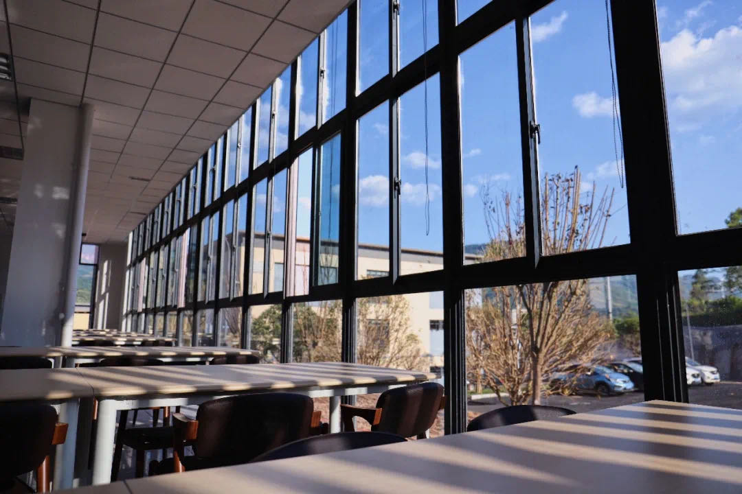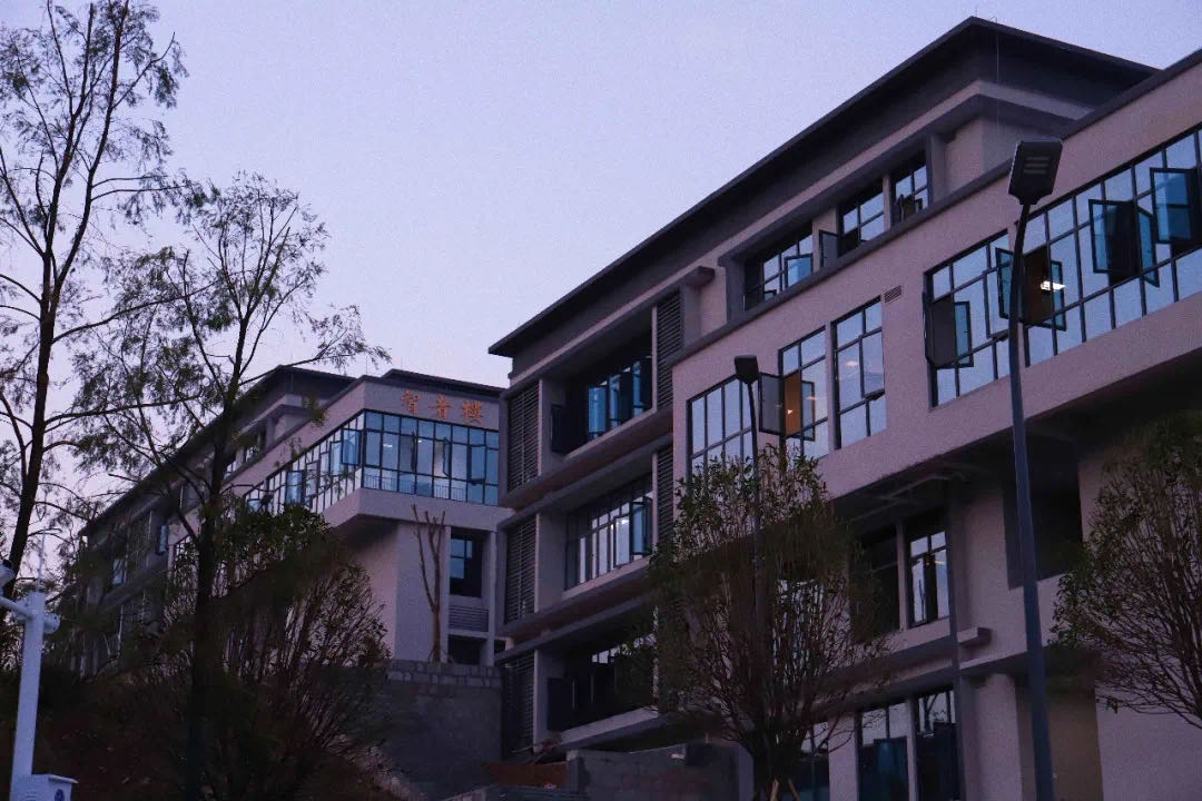 食堂的右边,出现了最具ins风建筑——“智者楼”、“勇者楼”,简约的配色与清爽的几何造型拼接,灰白的建筑墙上绿影摇曳。到了黄昏时分,晚霞作配落日的余晖掉进了智者楼的窗里。站在楼边,收起傻笑,保持高冷,让我们一起成为“文艺银er”~