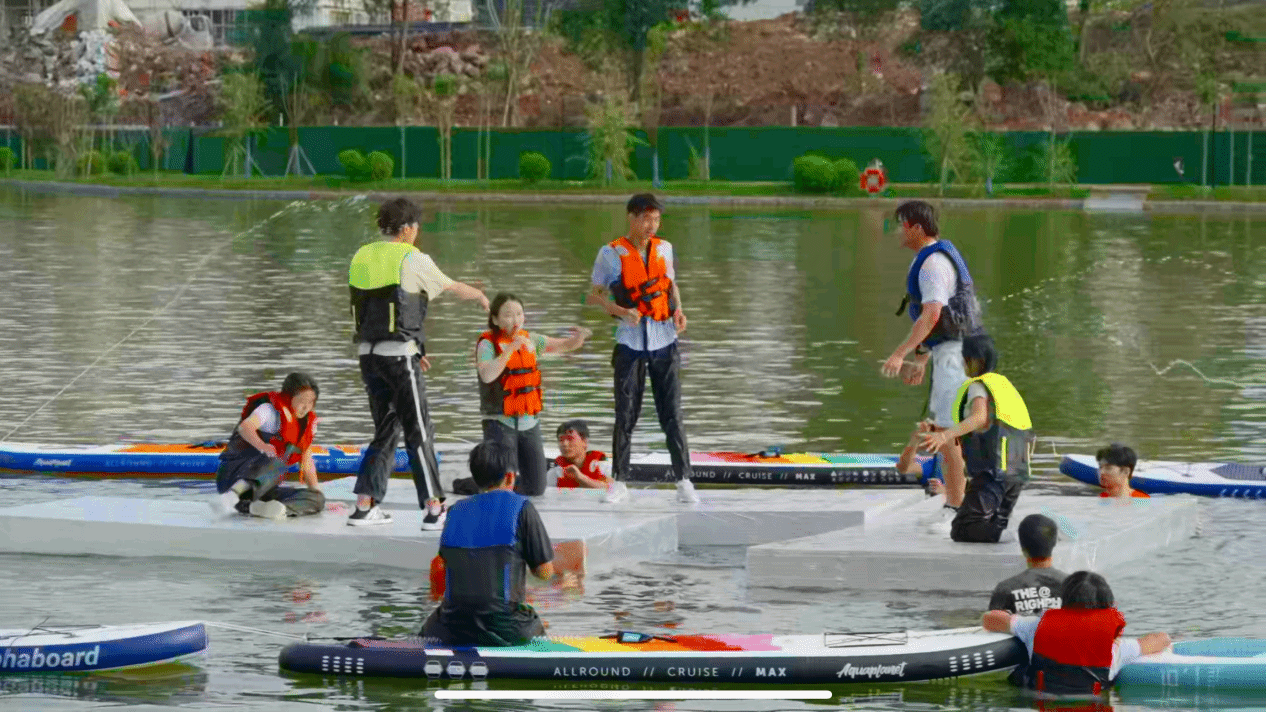 活动已接近尾声,最后来到一场角色扮演游戏,公主们需要在固定区域等待骑士的鲜花,而骑士们则需要尽快完成挑战并将鲜花送给公主。选手们一次次落入水中,但他们依旧不畏挑战,迎难而上,越挫越勇。队员们之间的合作与默契也在整场比赛中展现的淋漓尽致。