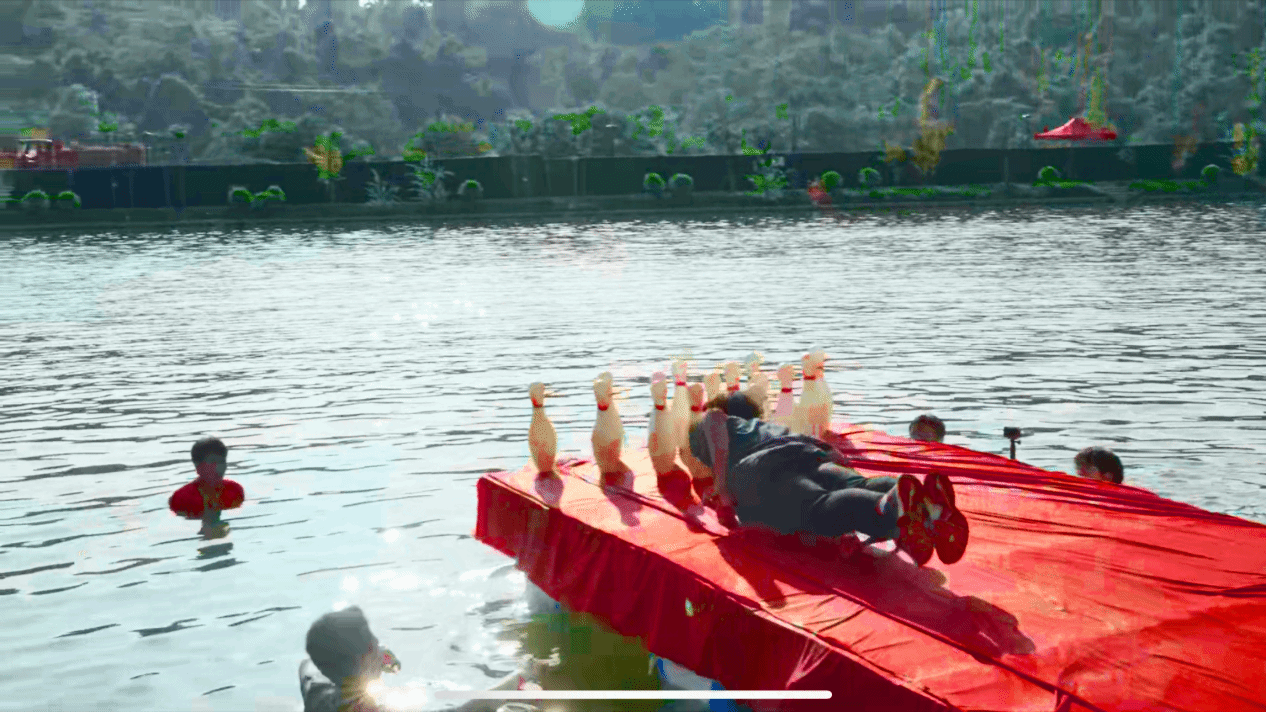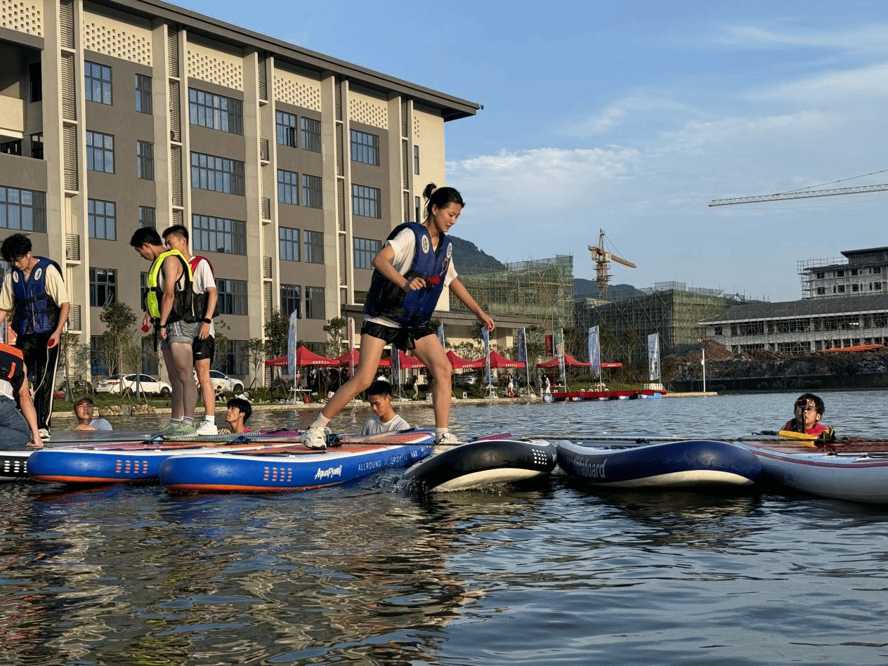 第二个环节,伴随着选手们激昂的加油助威声,把现场的气氛推向一次又一次的高潮。滑板擦过浮板发出的清脆声,轻盈的身形在夏日阳光的照耀下,显得斑斓夺目。这场游戏将带来惊险刺激的滚动体验,让学生们感受到独特的水上保龄球乐趣。