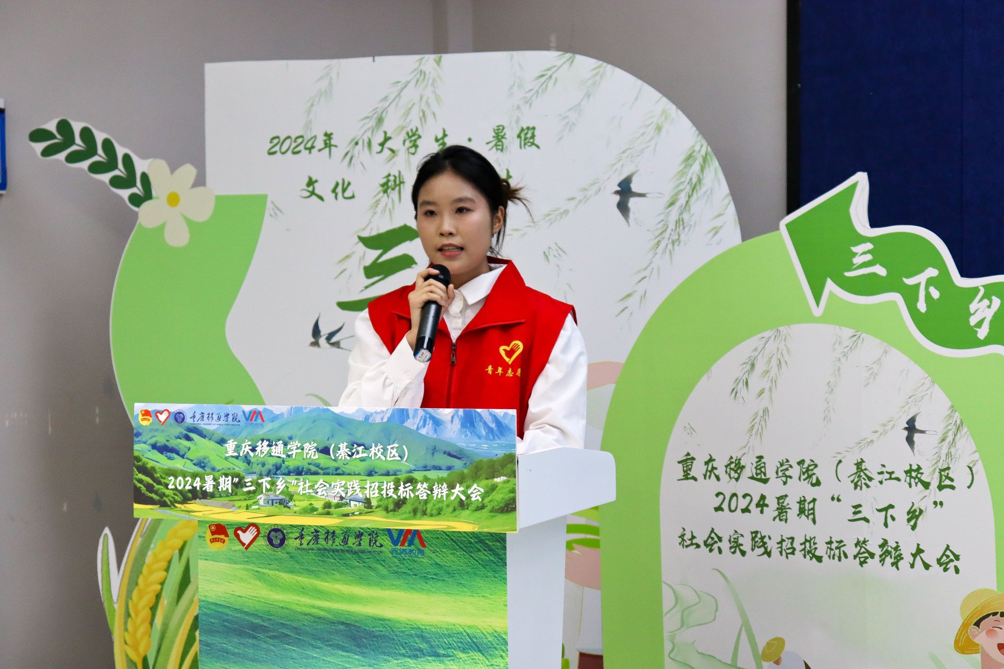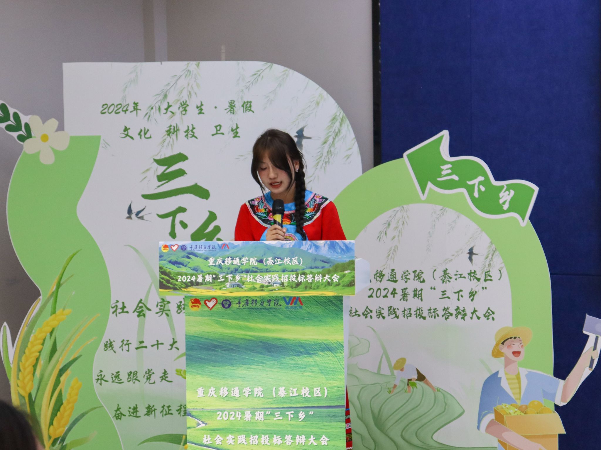 为深入学习宣传贯彻习近平新时代中国特色社会主义思想,全面贯彻落实党的二十大精神,引导和帮助广大青年学生在与实现相结合的“大思政课”中“受教育、长才干、做贡献”,进一步推动青年学生深入基层、了解国情、增长才干、磨炼技能。我校积极响应号召,于6月24日在綦河书院观涛·多功能报告厅组织开展“践行党的二十大、永远跟党走、奋进新征程”重庆移通学院(綦江校区)2024暑期“三下乡”社会实践招投标答辩大会。
