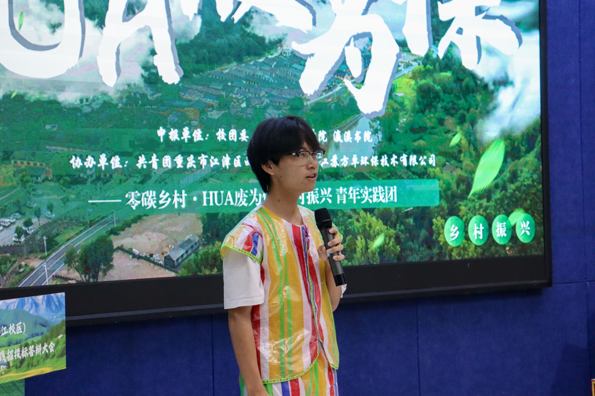 “零碳乡村·HUA废为保乡村振兴青年实践团,身着以塑料为材料的绿色环保服装,展现绿色与志愿的结合。团队以“1+3+N”模式-“融‘绿’于宣”,进行内外不断完善,打造多元化宣传服务模式,用行动“HUA”废为宝;建立线上APP与专属网页,以互联网为媒介,聚集更多志同道合的大学生,为环保零碳乡村奉献出青年一代的努力。