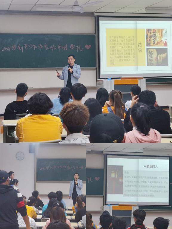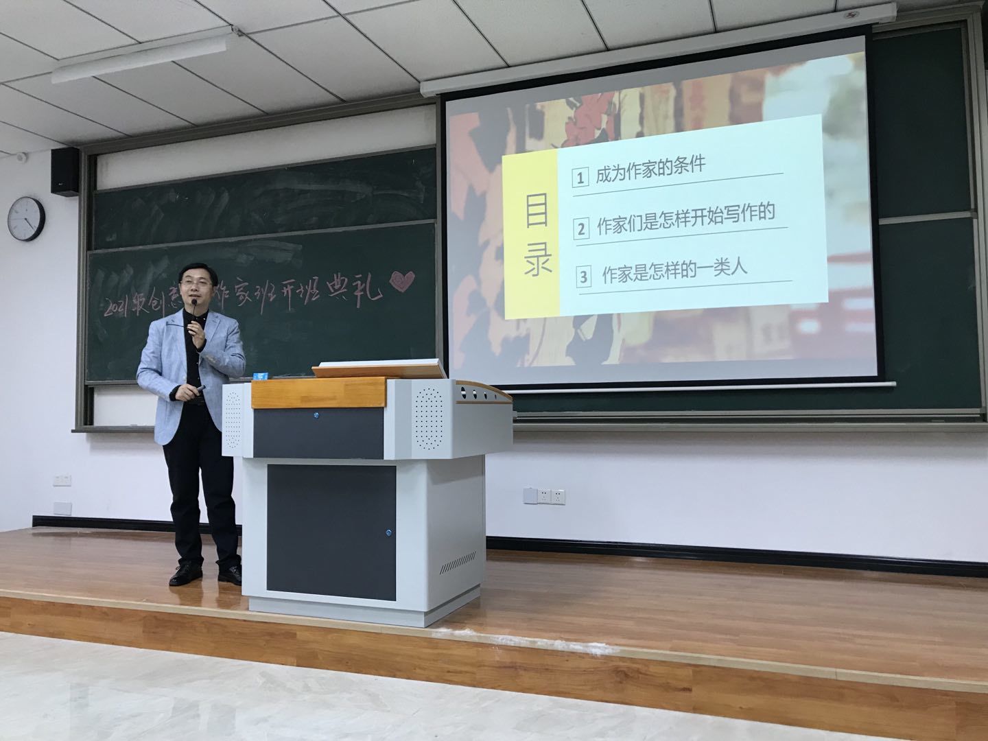 大数据与软件学院林泽金副院长说:“通过创意写作的学习,提高你们的写作思维,特别是发散思维方面的能力,观察能力、想象能力、判断能力、思考能力,这些能力有助于提高你们的综合能力和思想水平。”