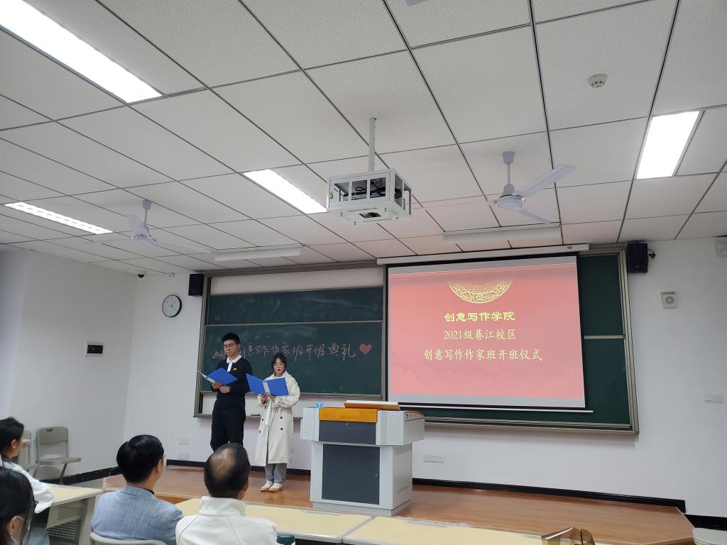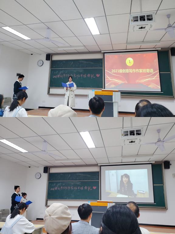 下午4点作家班2021级创意写作作家班开班典礼如期举行,这次开班典礼由作家班学员杨雄傑、朱凤两名同学担任主持,他俩落落大方、稳稳当当的主持风格,让人特别惊喜。