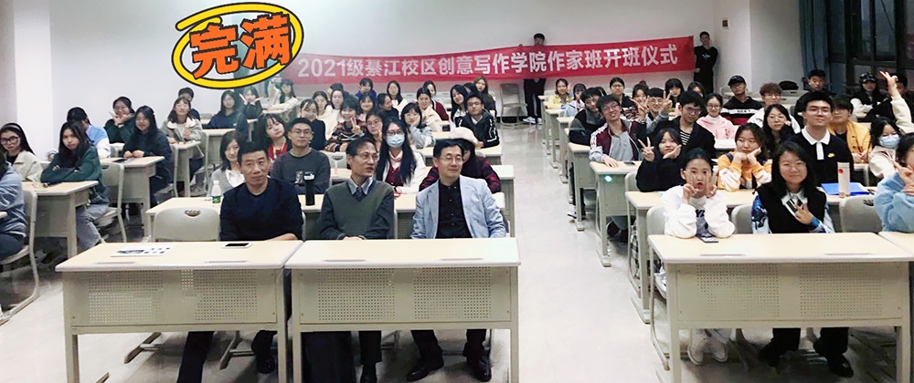 11月3日下午,日子似乎稀松平常,但对于重庆移通学院綦江校区作家班的76位同学来说,却有着载入校史的独特意义——创意写作学院首届作家班开班典礼了。按照预定地点,各大学院的76名精英学子,早早就进入了仁者楼303教室等候。而另一边,创意写作学院丁伯慧院长也带领合川校区的老师们远道而来赴会。大家都兴奋且幸福地期待着这一时刻,因为这是綦江校区的首届作家班,更因本届作家班从报名人数到开班的速度都是史无前例的多和快!