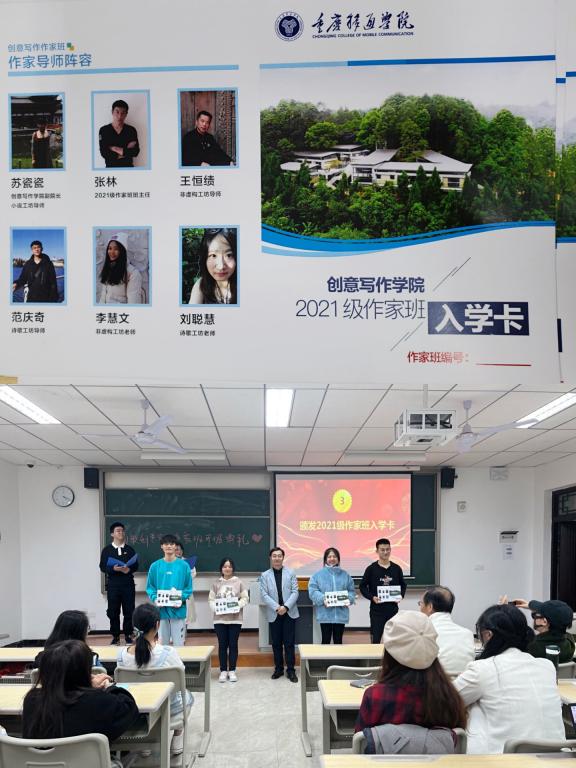 主持人朱凤同学替同学们说出了心声:“感谢丁院长!看着制作精美的入学卡,我们对作家班的旅程充满期待。”