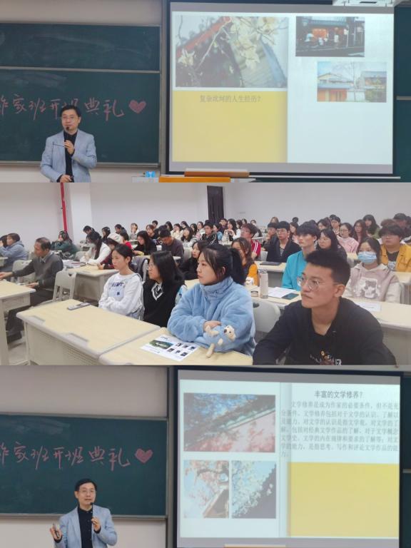 最后丁院长总结道:“作家应是这样的一类人,会讲故事的人、独立思考的人、关注社会现实的人、勤奋的人。文学是一种创造性的劳动,需要勤奋地思考和创造!”