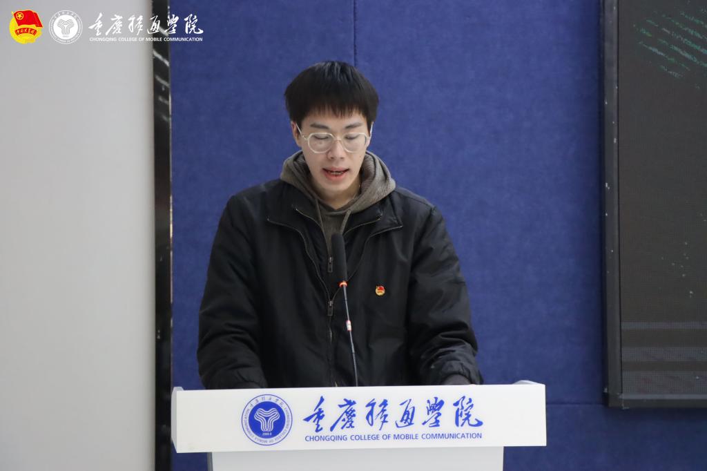 议程最后一项,重庆移通学院綦江校区团委副书记蔡星宇老师为全体学生组织干事寄语。蔡星宇老师率先肯定了所有老师和全体干事上半学期的工作成果,并充分感谢大家的辛勤付出。回顾上半学期全体干事一起创造出的重庆移通学院綦江校区许许多多的第一次,真切见证了綦江校区在大家砥砺建设下的辉煌历程。蔡星宇老师希望每一位干事都能从工作中得到蜕变,从陌生到了解、到熟悉,再到可以,最后能独当一面。