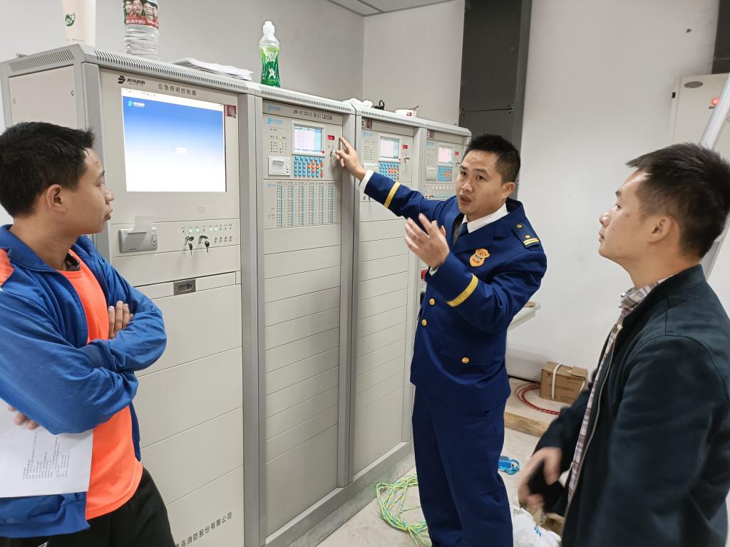 区消防队专职人员进行消控室技术指导