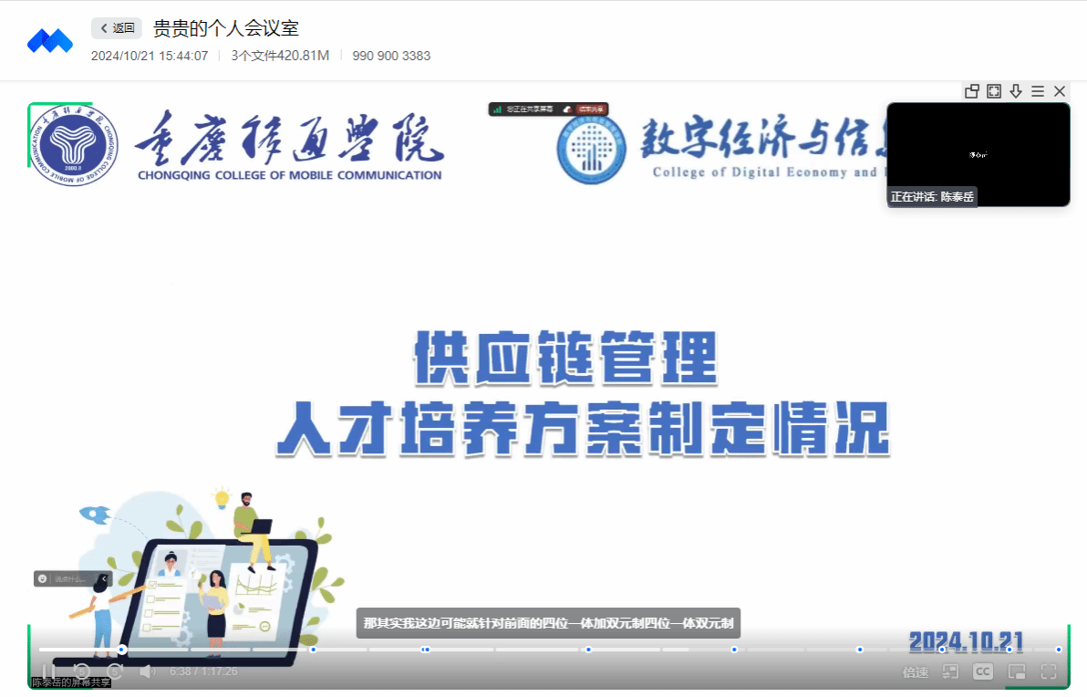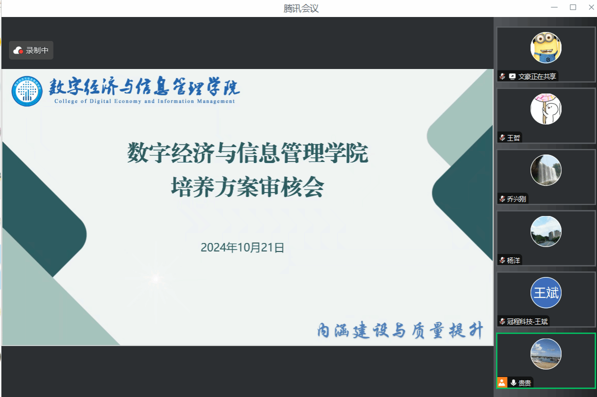 为进一步确保培养方案符合行业需求,优化课程体系,促进专业发展,2024年10月21日数字经济与信息管理学院召开线上培养方案专家论证会,会议由刘贵容院长主持,企业专家、教研室主任、专业负责人、核心课程建设人参会。