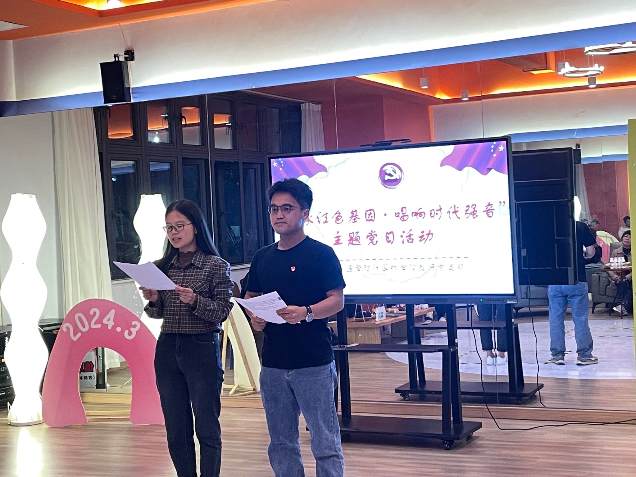 2024年4月22日,星期一晚8点,重庆移通学院(綦江校区)的古剑书院排练厅内,一场别开生面的主题党日活动火热上演。此次活动由计算机学院教师党支部承办。主题为“传承红色基因,唱响时代强音”,旨在通过红歌歌唱,深入贯彻落实党的教育方针,加强对党员干部和群众的思想引领,传承红色基因,激发爱国热情。