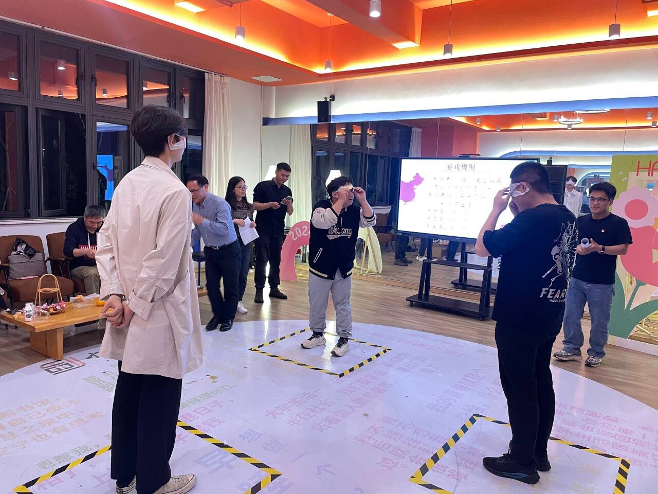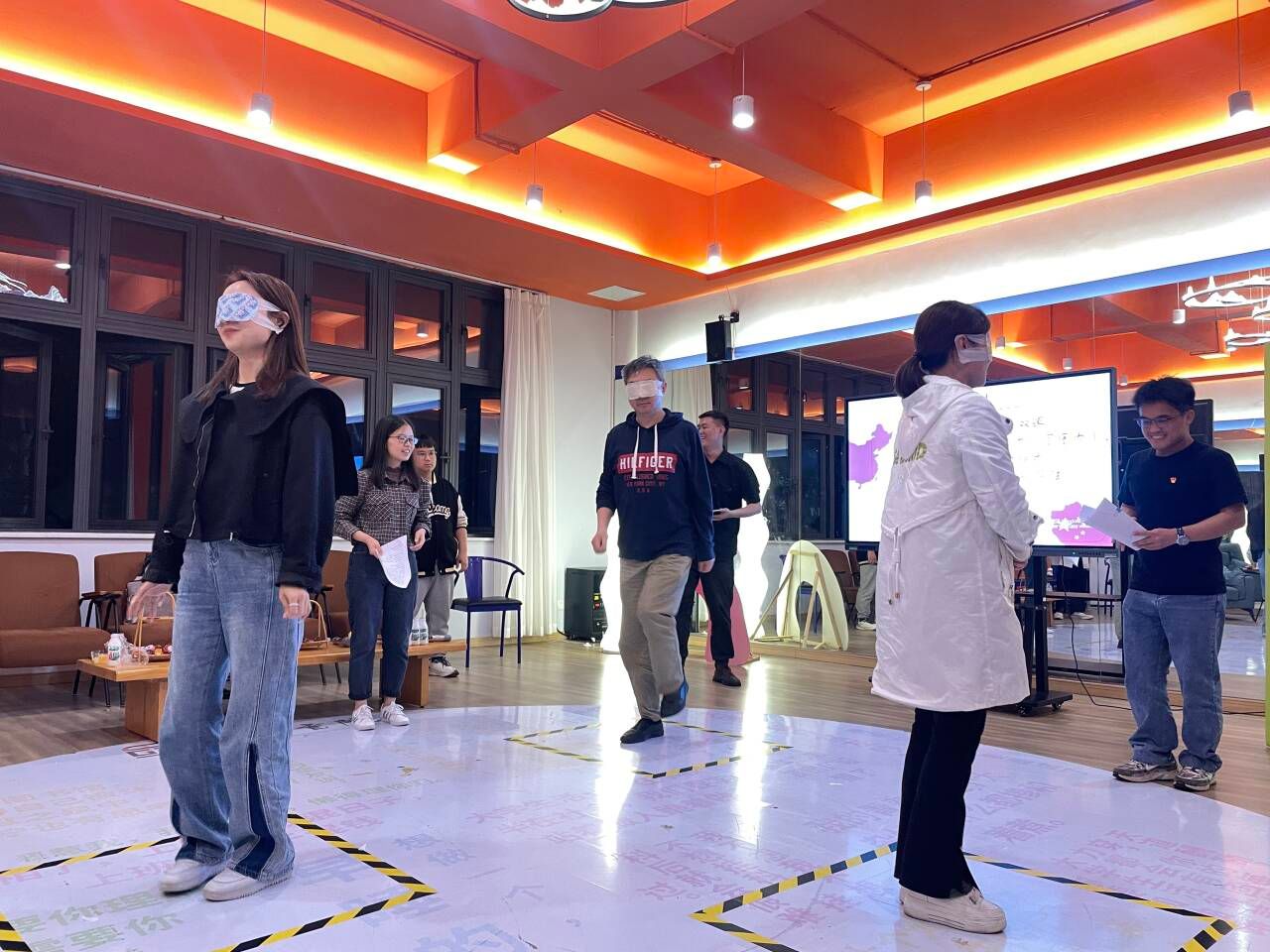 随后,我们还安排了一个富有创意和趣味性的游戏环节——原地蒙眼踏步。参与游戏的老师们需在原地蒙上双眼,然后在规定的时间内踏步前行。这个看似简单的游戏,实则考验了参与者的平衡能力和方向感。在游戏过程中,有的老师走得稳稳当当,有的则摇摇晃晃,甚至还有人不小心踏出了规定的圆圈。每当有人踏出圆圈时,现场便会爆发出一阵欢笑和掌声,这个游戏环节不仅让老师们放松了心情,也增进了彼此之间的友谊和团结。