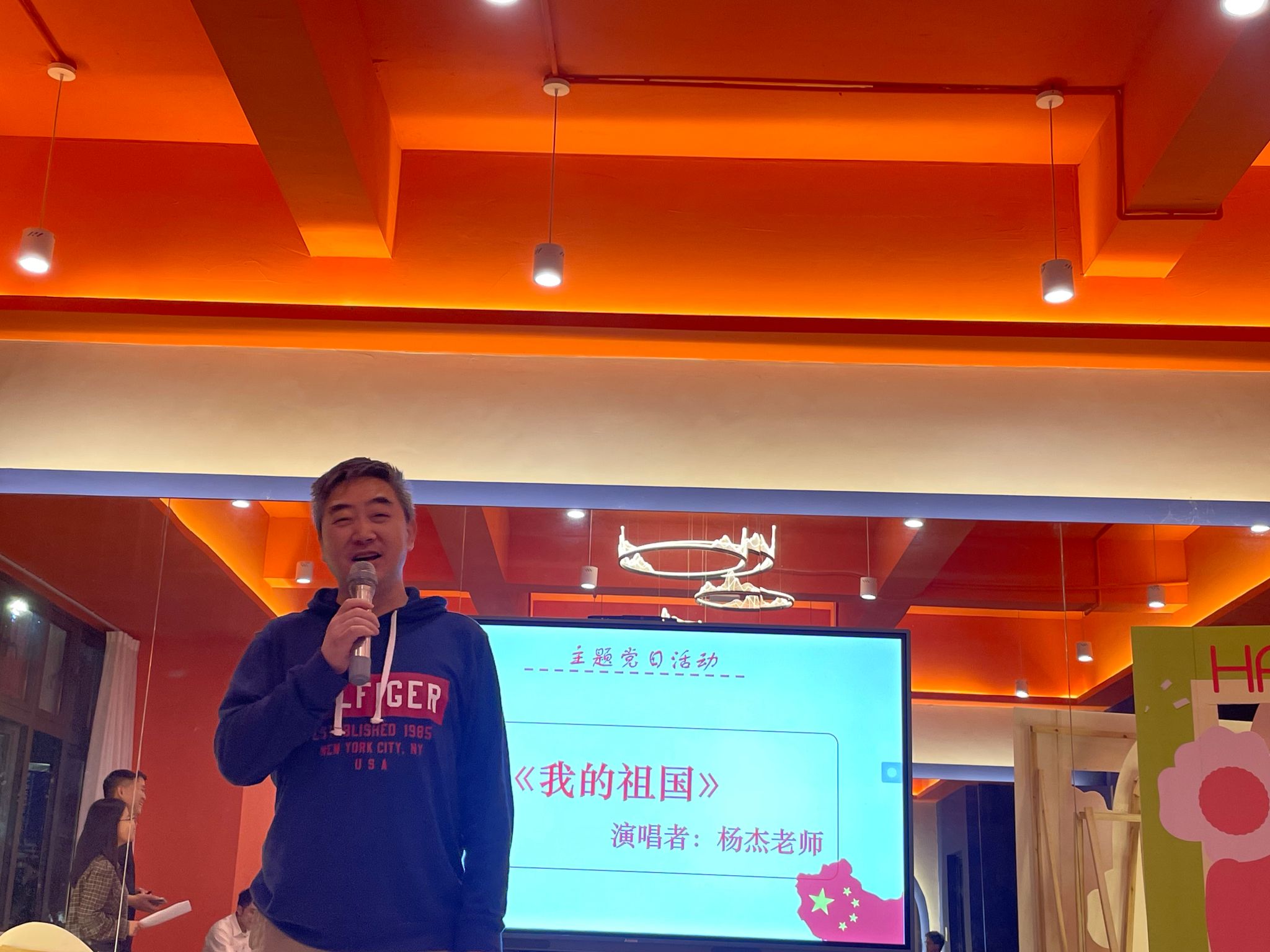 随后,周海老师上台,为我们带来了《不忘初心》。他的歌声充满了力量和信念,仿佛在告诉我们,无论生活中遇到多少困难和挑战,我们都不能忘记自己的初心和使命。最后,全体老师齐聚一堂,共同合唱了《我和我的祖国》。这首歌曲充满了对祖国的热爱和自豪,每一位老师的歌声都充满了激情和力量,将整个活动推向了高潮。在那一刻,我们仿佛能够感受到整个学校都充满了爱国之情,每一个人都为能够生活在这片土地上而感到自豪和幸福。