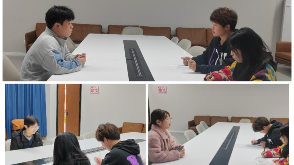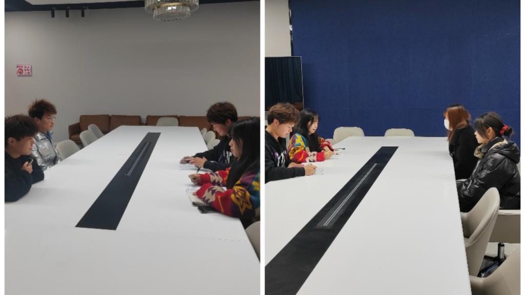 同学们参与工作室的热情很高,但部分学生因上课与面试时间相冲突未能参与面试,工作室决定为他们提供第二次面试机会。12月4日14:00于綦河书院二号楼励行会客厅进行第二次线下面试会议,三位学生负责人根据面试者具体情况进行评分,决定面试结果。参与此次线下面试人数共有13人,录用6人。