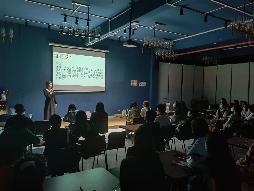 “尝”完骇人听闻的故事后,为让同学们更好的创作、分享自己所遇到的故事,本期活动特加入水平思考互动环节,帮助参与学子强化故事讲述的结构性,该环节以“是”或“不是”为仅有关键词,通过提问者与出题者的高频互动,不断逆向推理、猜测事件发生的真相。推理过程是否精彩的关键,在于出题者能否想到一个有具有创意,而且大家都没听说过的情境。环节中,同学们脑洞大开,在思维的相互碰撞下,装造出了一个又一个精彩出奇的完整故事,现场气氛一转“诡异惊悚”的冰感,逐渐热烈。