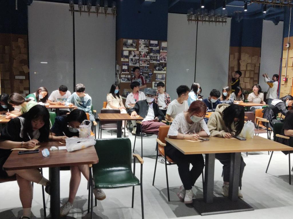 气氛从“惊悚离奇”到“热烈非凡”,再到“冥想构思”,近90分钟的时间,骤变的氛围不断挑斥着参与学子的脑细胞,在脑力训练后,同学们为纪录自己重新构想的“诡”故事,趁热打铁,纷纷提笔书写,本期故事茶馆系列活动在同学们提笔书写的“刷刷”声中完美落幕。