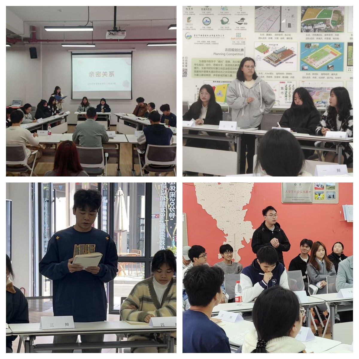 11月,心理委员们积极参与“爱情具象化”“为何家会伤人”“吵架也可以好好吵”等“亲密关系”主题系列讲座,对亲密关系有了更深刻的理解。他们结合11.25心理健康月所学知识,参考班级同学日常兴趣爱好,同时发挥自身兴趣和创造力开展了不少新颖的心理健康班会。最经典的班会形式是知识宣讲,可以起到思想引领的作用。2022级计算机学院计科10班心理委员谭馨辅以事例说明,在人际交往过程中应该保持真诚、信任和尊重,使同学们认识到良好的态度是人际交往的关键。