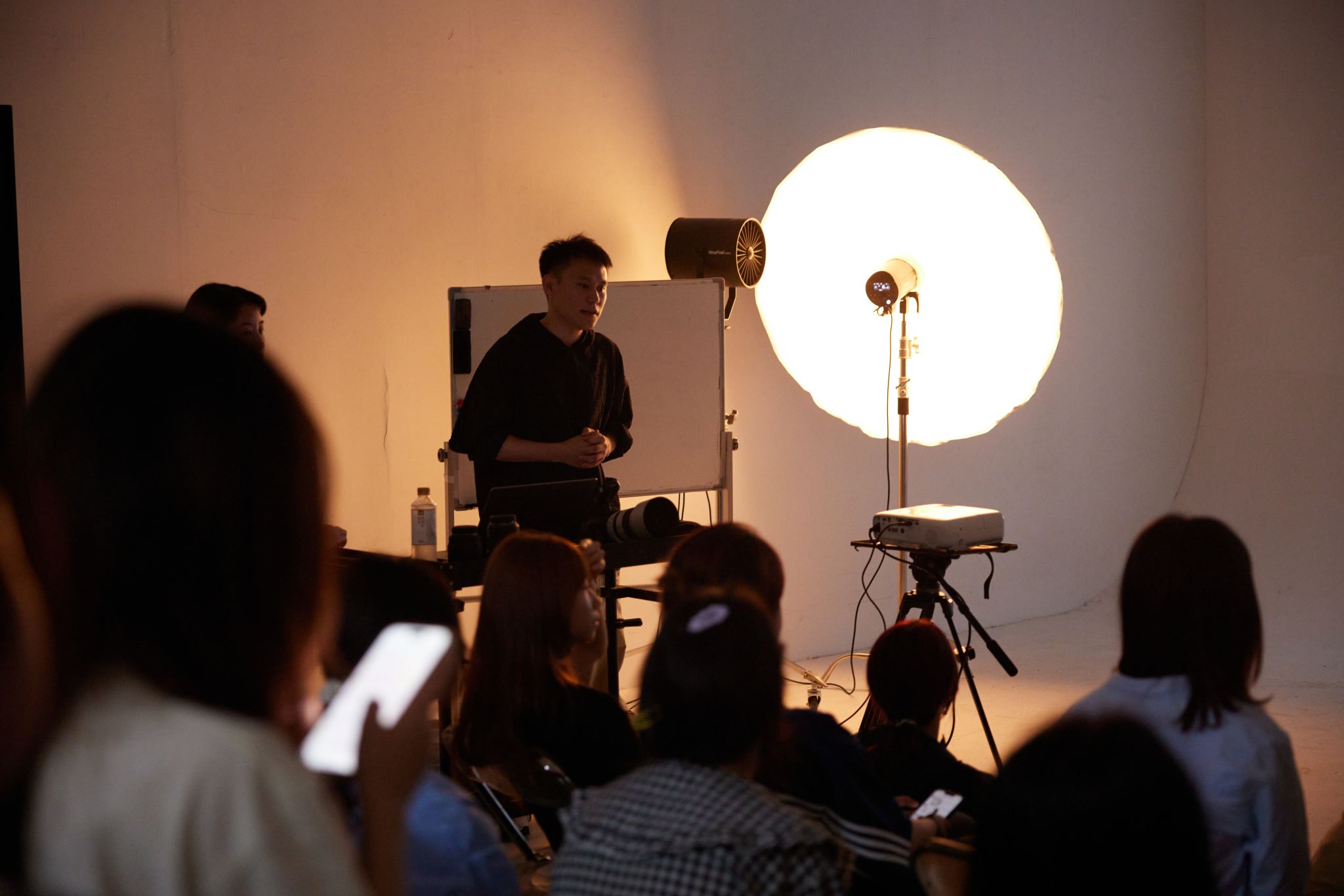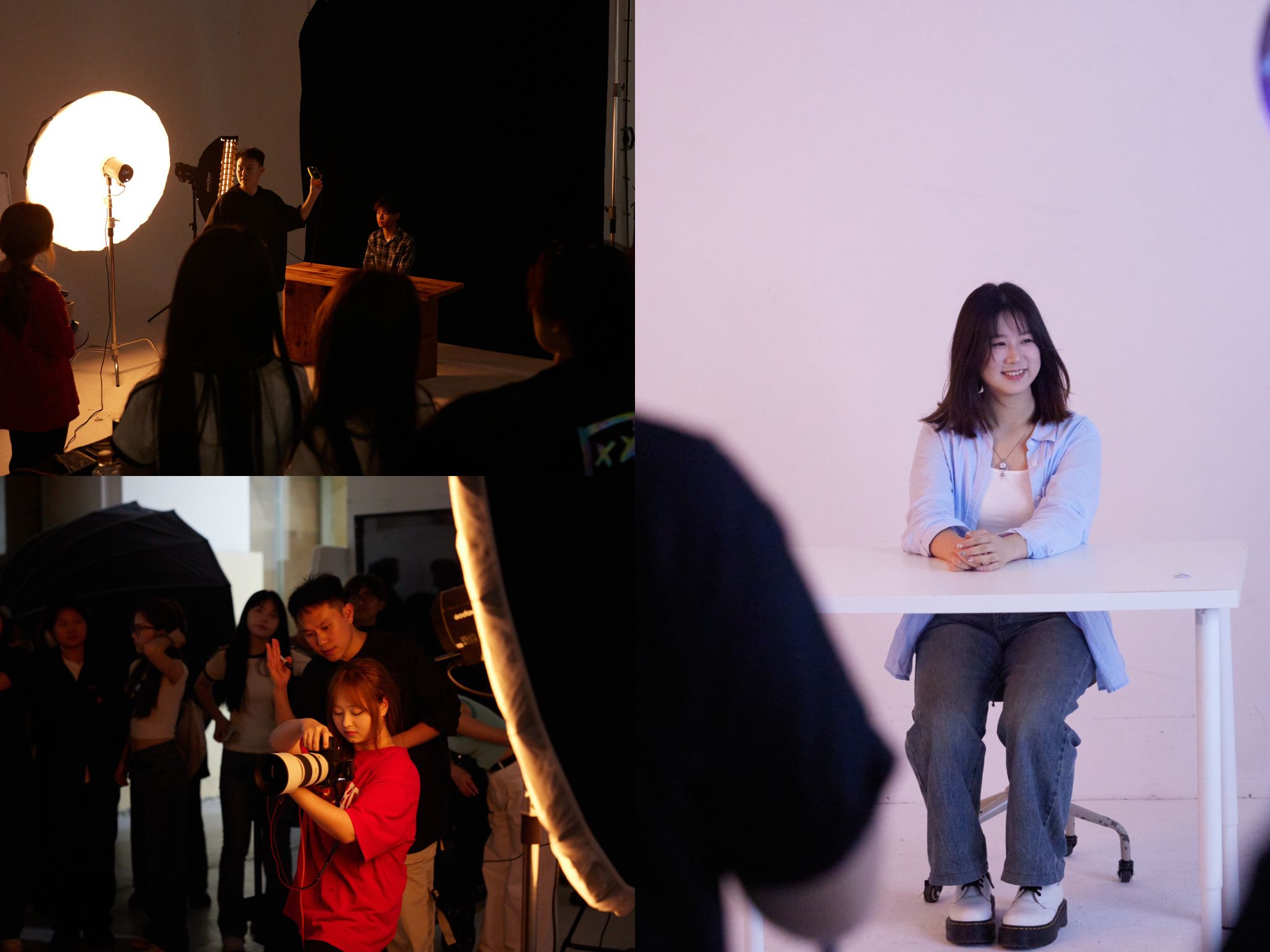 深入实践,感受光影魅力。讲座分享后,郑文先生带领同学们在摄影棚内开展“人像主题摄影”拍摄实践。在实际拍摄交流中,郑先生传授了诸多室内人像拍摄的技巧,比如如何进行测光、布光,分析考虑模特造型姿势、空间设计等元素,学会利用前置景制造氛围感,拍摄更具质感的人像作品。还现场指导同学们如何引导模特自然变换姿势,捕捉最真实的情感表达,并启示同学们要学会不断突破自己,多加尝试才能不断提升自我实践能力。