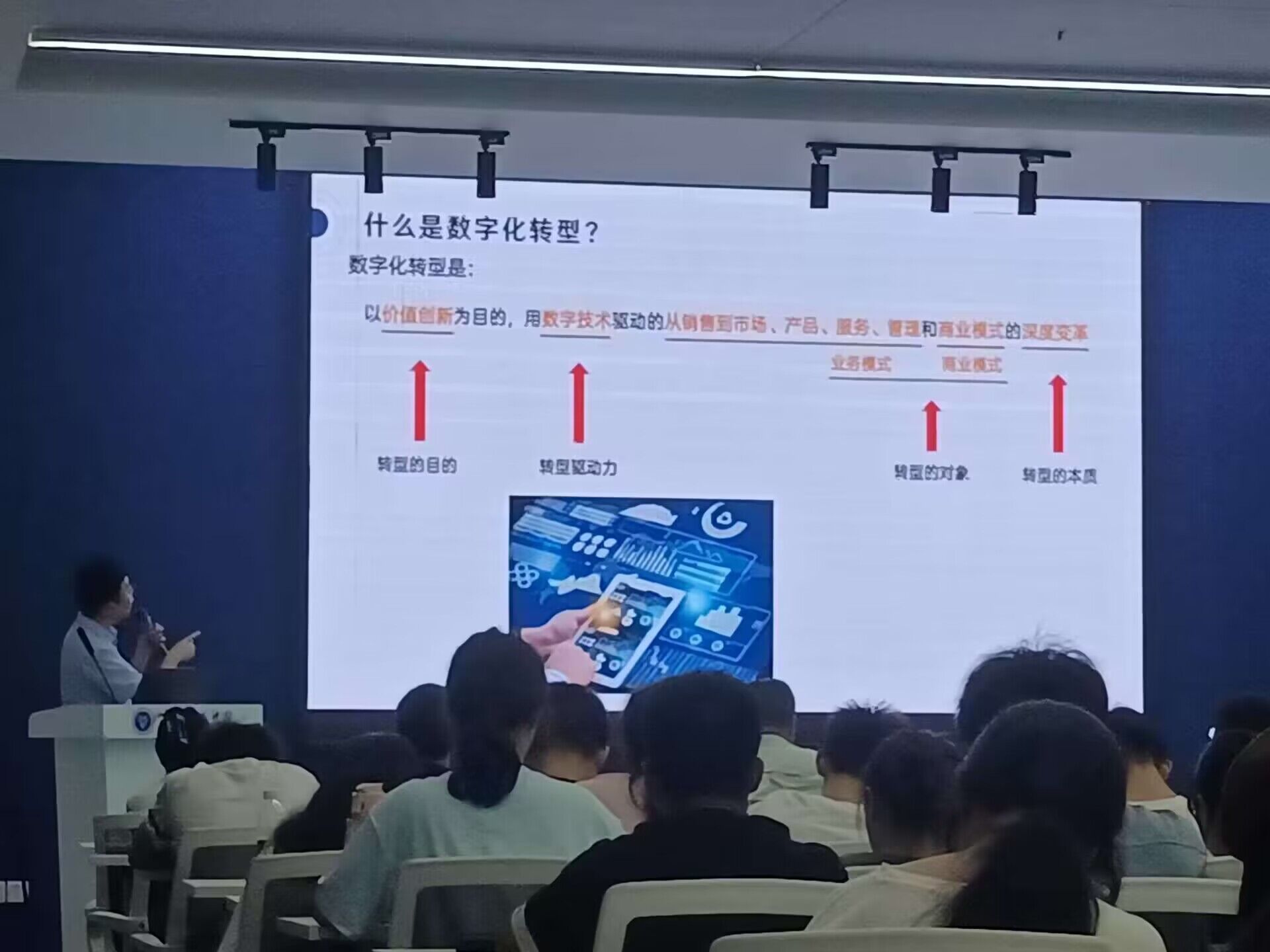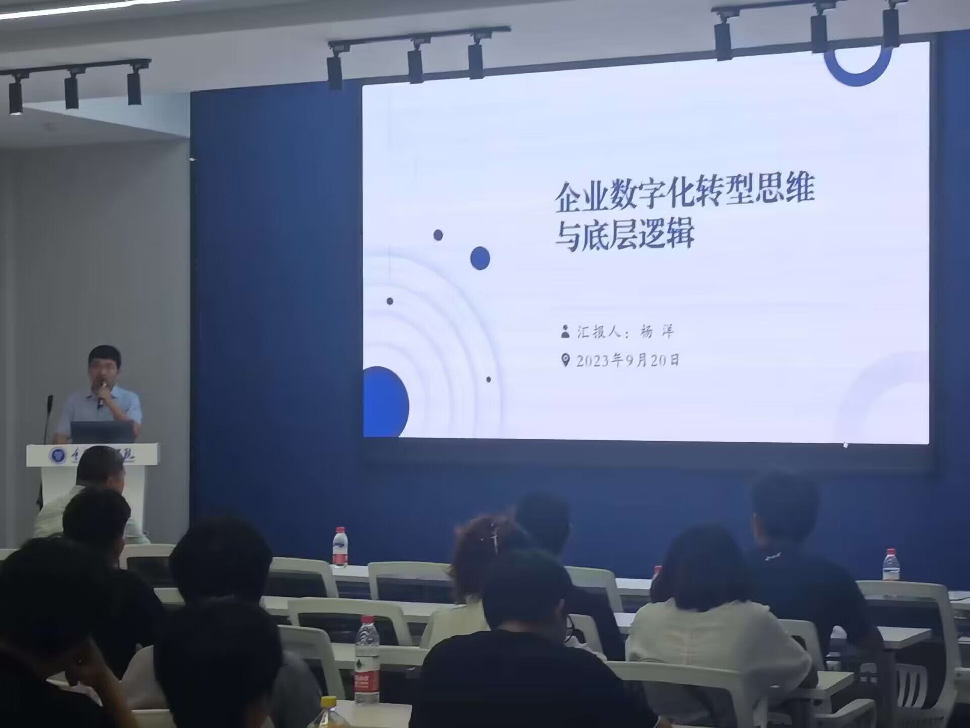 讲座伊始,主讲人分享了企业数字化转型的背景和意义,指出随着社会的发展国内国际促进数字经济的快速发展,数字化转型是一个国家成为数字化强国的重要基础。接着杨老师强调,企业在转型过程中需要具备创新思维,敢于突破传统的思维模式,追求全新的商业模式和产品设计;与此同时他分享了众多企业成功的案例,印证这些企业通过敏锐的洞察力、前瞻的市场观察和灵活的决策,成功地实现了数字化转型,成果可观。