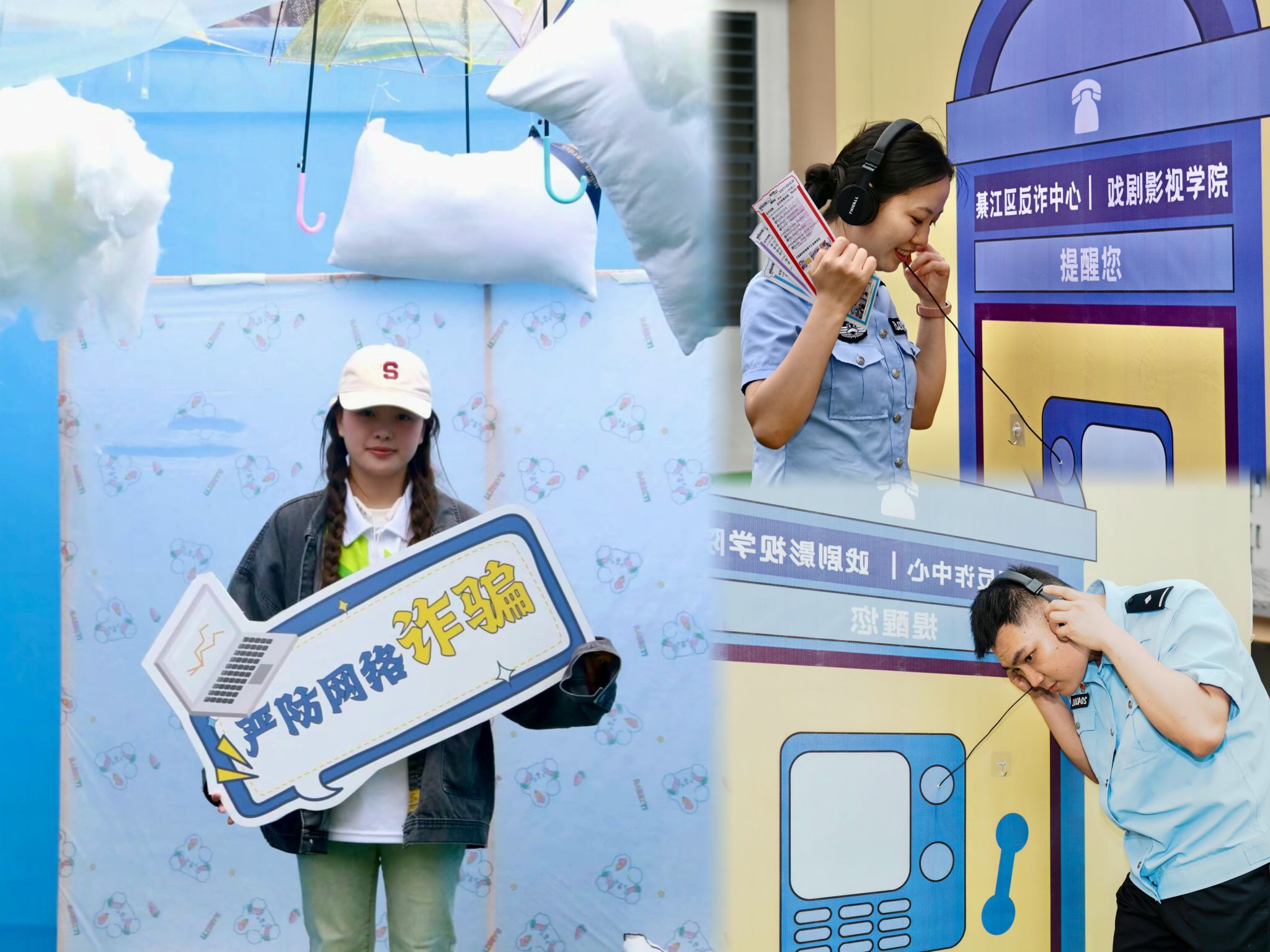 今年的反诈研究所在团綦江区委、綦江反诈中心的大力支持下顺利举办,活动落地离不开背后的“专业团队”的技术支持,戏剧影视学院学生利用专业优势,经过近2个月的组织筹备,活动形式有趣、好玩,但反诈一点都不含糊,在各个环节的设计上下足了功夫!