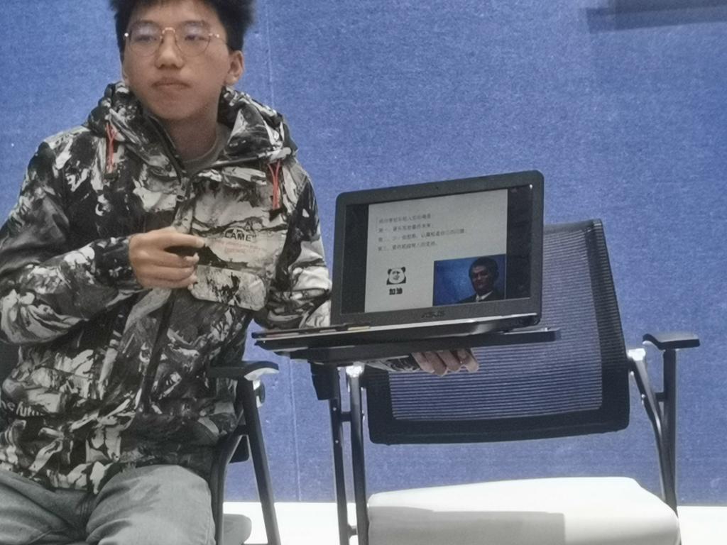 第四组的耿冬雪同学带来的是《任正非与华为》。通过讲述任正非青年时期的贫苦家庭条件,让同学们在为他感到惋惜的同时,也不由得惊讶他如今的成就。分析了华为从一步步蜕变,到如今走向世界的硬核技术,每一次都带给人们不一样的惊喜。怎样的信念才能支撑他走向这一步,又是什么勇气让他有着会当凌绝顶的决心,成为科技产业领军人物,这其中付出的可想而知。任正非理性低调,果敢自信,甚至面对竞争对手的霸气与嚣张都是他成就华为的态度。他的精神值得大家赞赏,更是青年人的学习榜样。优越的家庭条件不一定造就优越的人才,但值得肯定的是寒门生活也会造就一批成功的人物,任正非定会激励更多贫苦的人迈向新的道路。