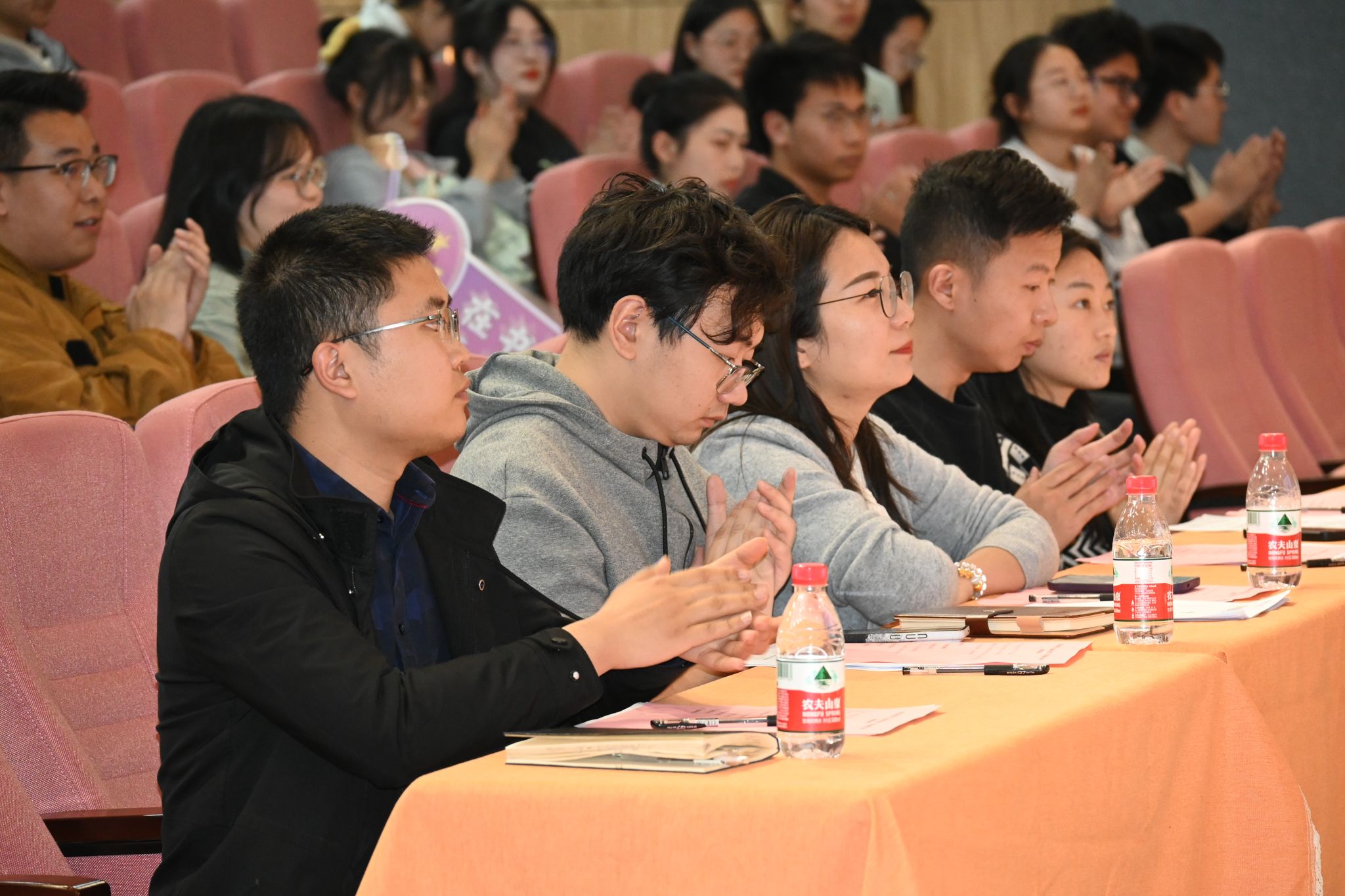 选手风格各异,现场互动频频。曹玉姣老师从选手与书院精彩的故事分享和深厚的情感连接,联想到自己奋斗多年的完满之旅,向台上每位真挚努力的选手,以及台下加油助威的观众表达了真诚的感谢。同时为学子们提出舞台讲演的建议,她表示在正式比赛中要做到脱稿,作为书院讲解员,要对自己的书院足够了解,如数家珍。她强调讲解员在表述上要有亲和力,时刻注意仪态与表情管理,声情并茂而自然地道出空间情况,让嘉宾感受到热情与浓厚的书院气息。最后,曹老师鼓励同学们充分发掘并有效利用校内资源、书院资源,充实丰富自己的校园生活,期望每位同学在未来都能成为学校书院特色的移动代言人。