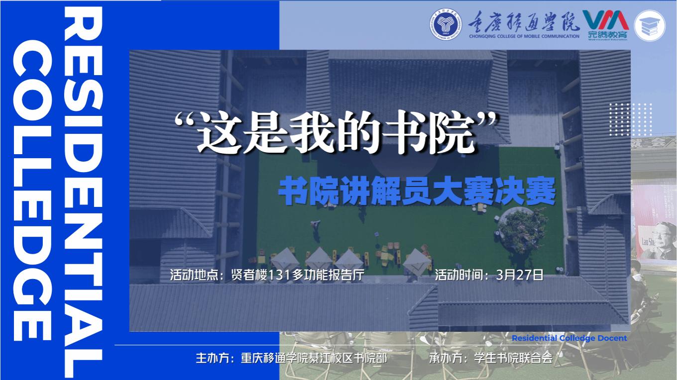 为呼应四全育人实践新期待,在家校共融里共创文化社区,在情感共鸣中共塑朋辈生态,积极鼓励书院学子深入感受书院魅力,参与书院校内外对话的大平台构建,3月13日至3月27日,重庆移通学院綦江校区书院部携各书院举办“这是我的书院”书院讲解员大赛。通过书院学子解读书院文化体系、模拟接待外来嘉宾、介绍书院空间等比拼形式,调动书院学子主人翁意识,挖掘学生更具多元化的工作技能,聘选出优秀的书院讲解员。